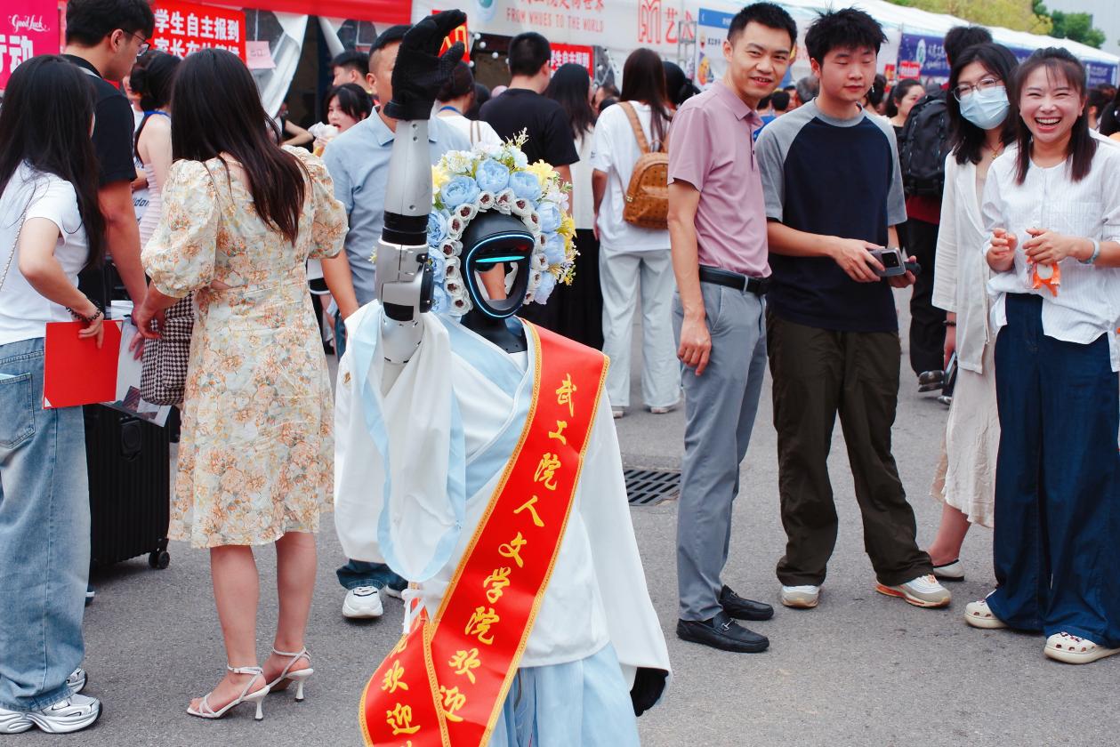 迎新中还有位特殊志愿者:智能机器人“小文文”。它能与新生打招呼、查询新生住宿地址,还能陪伴儿童游乐区小朋友,进行互动玩耍。2025级汉语言文学专业新生刘倩通过机器人查询到自己宿舍后震惊道:“我第一次被机器人迎接,感觉很新奇也很便利。”该校人文学院副院长吴海燕表示,机器人参与迎新活动,实现了智能迎新高效报到,无缝衔接新生入学,同时这类智能体系也会应用到教学领域,为学生构建高效的数字学习新生态。