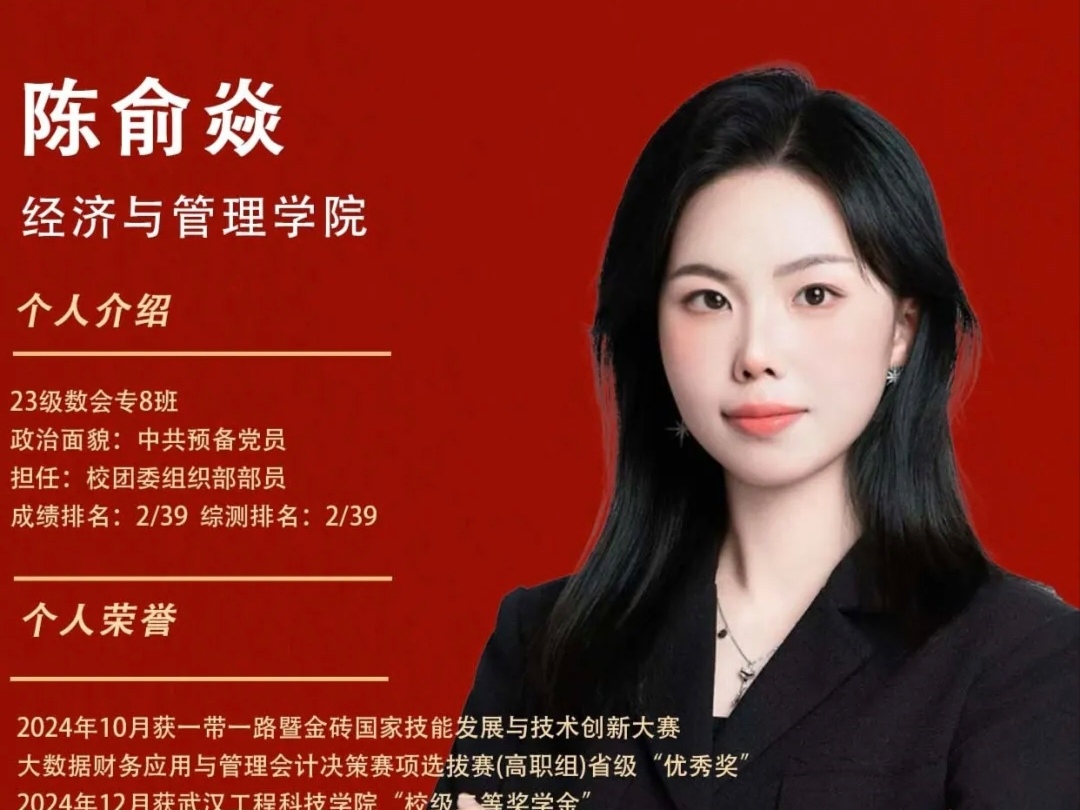 谈及斩获国奖的感受,2023级大数据与会计专业的陈俞焱眼中满是真挚:“这是一种被认可的喜悦,更是继续前行的动力,这份荣誉属于每一位支持我的老师、同学和家人。”