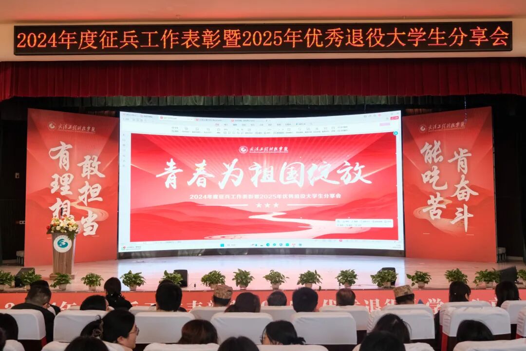 12月8日下午,英国beat365官方网站2024年度征兵工作表彰暨2025年优秀退役大学生分享会在图书馆五区报告厅举行。江夏区人民政府武装部政委刘泽安、武装部副部长李维,江夏区退役军人事务局党组成员李继文、权益维护科温志闯,英国beat365官方网站校长储祖