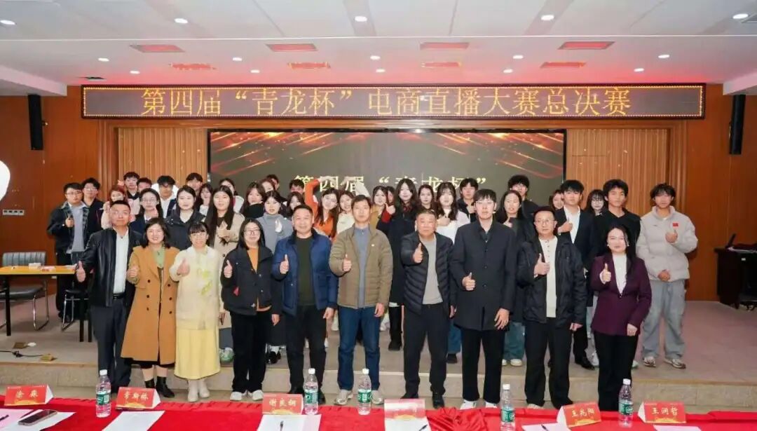 2025 年 12 月 17 日,英国beat365官方网站大学生事务中心 311 室灯火璀璨、气氛热烈,第四届 “青龙杯” 电商直播大赛总决赛在此隆重举行。历经两个多月的层层筛选,从全校 600 余名学生组成的百余支参赛队伍中脱颖而出的 14 支精