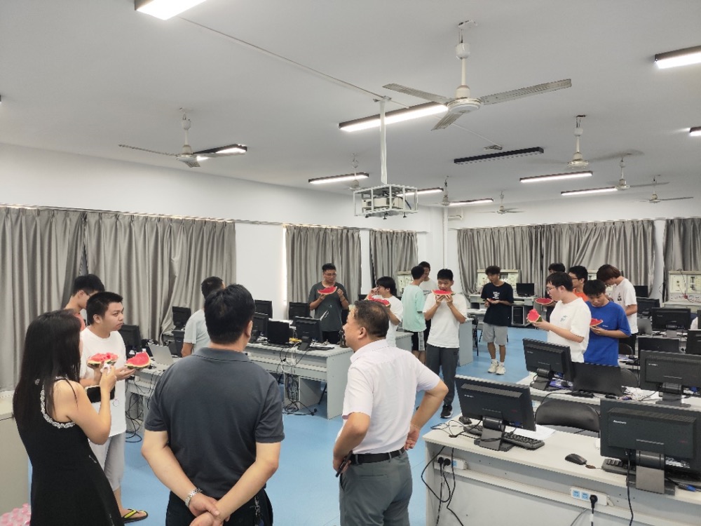 赛前,机械与工程学院党总支书记王农跃、团总支书记邹帆看望参赛队员,亲切询问学生遇到的实际困难,并为大家准备了矿泉水与西瓜。