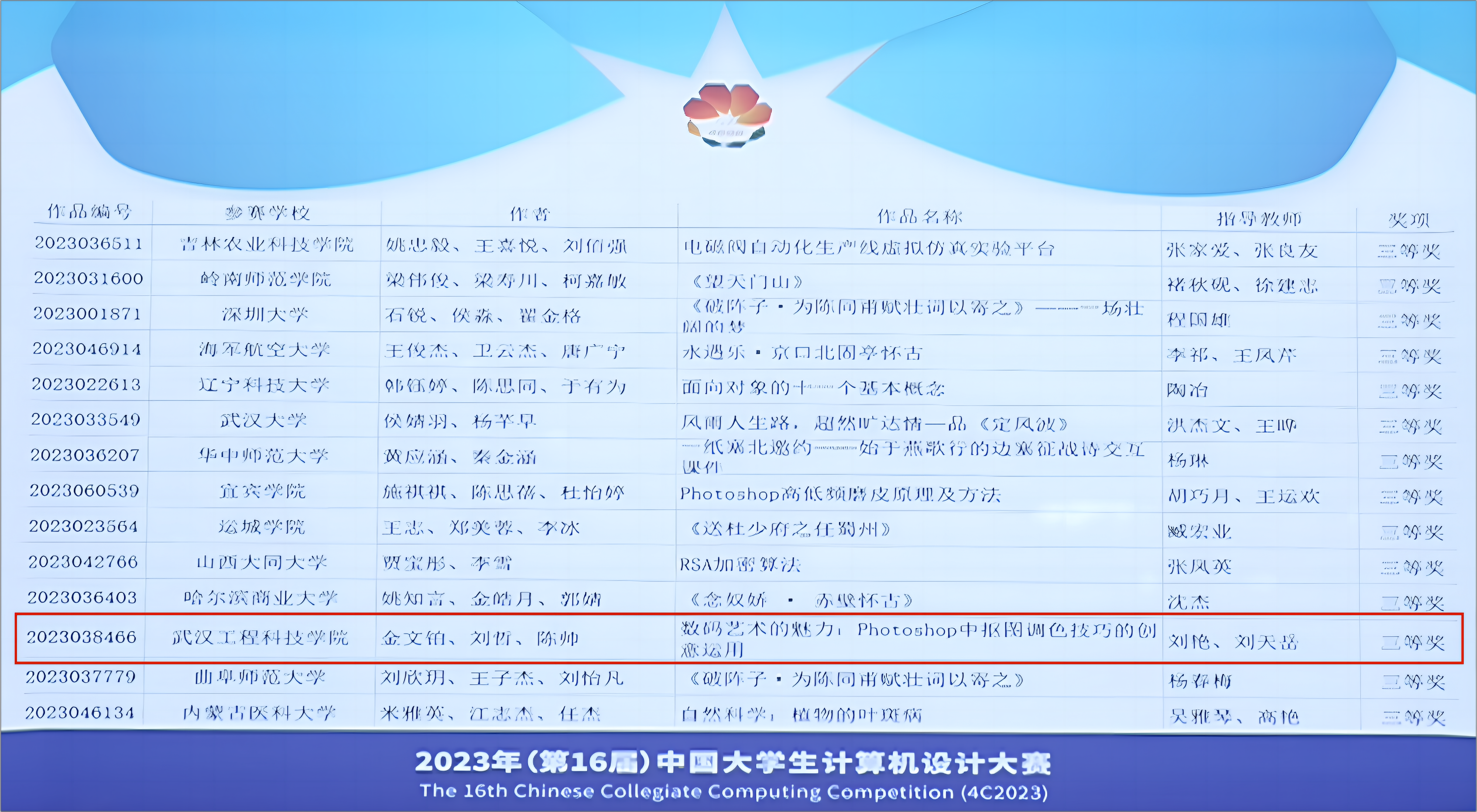 据悉,中国大学生计算机设计大赛是我国高校面向本科生最早的赛事之一,也是全国普通高校大学生竞赛排行榜榜单内赛事之一。大赛的目的是以赛促学、以赛促教、以赛促创,为国家培养德智体美劳全面发展的创新型、复合型、应用型人才服务。第16届中国大学生计算机设计大赛分设11个大类,分别是:(1)软件应用与开发;(2)微课与教学辅助;(3)物联网应用;(4)大数据应用;(5)人工智能应用;(6)信息可视化设计;(7)数媒静态设计;(8)数媒动漫与短片;(9)数媒游戏与交互设计;(10)计算机音乐创作;(11)国际生“学汉语,写汉字”。大赛以校级、省级、国家级三级竞赛形式开展,分设上海、济南、沈阳、南京、厦门和杭州6个国赛决赛区。
