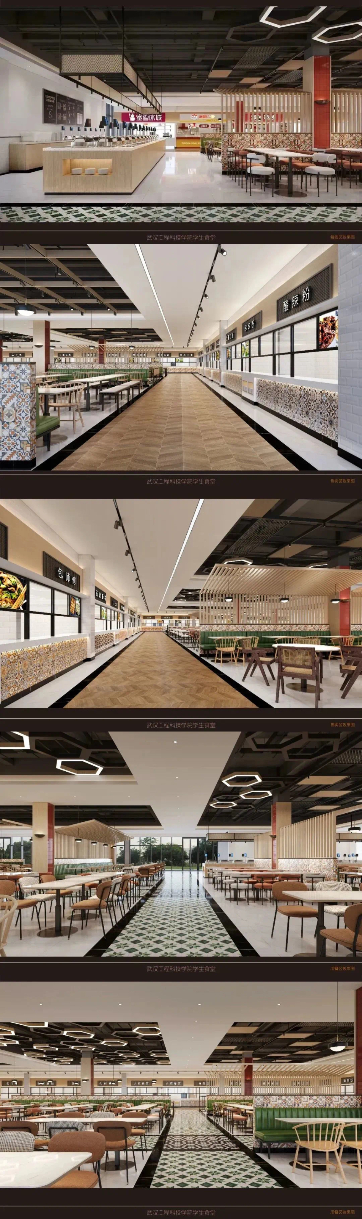 学生一食堂外立面改造面积约3500㎡,根据国外设计团队对校园外立面改造方案整体设计。整个外墙采用真石漆喷涂,外挂空调采用专业空调格栅遮挡,竖向增加红色铝板装饰条,与图书馆外立面装饰条呼应。学生一食堂内部整体装修风格基调为工业风,金属网、花砖、原木、格栅等元素,无不彰显着个性与惬意。学生一食堂外立面改造完成后,配合食堂周边绿化景观改造及食堂内部整体装修完成,将为师生提供一个舒适美观的就餐及休闲环境。