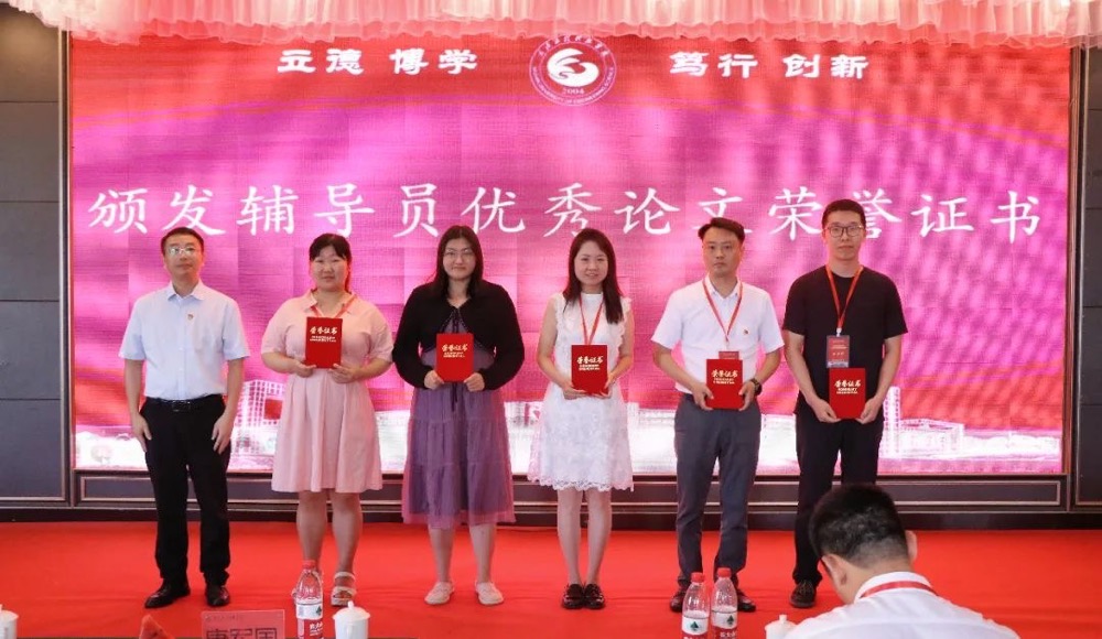 学校领导分别为学员代表马陈、江月、李丽红等16名老师颁发了优秀学员证书,授予第一组、第六组和第七组“优秀小组”奖项,颁发了我校辅导员优秀论文奖项。