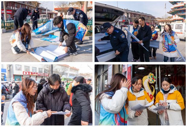 在阳谷县图书馆室外广场,服务队通过发放宣传手册、展示真实案例等方式,向市民普及了防范电信诈骗安全知识,并积极维护现场秩序,为现场增添了一抹“志愿红”。