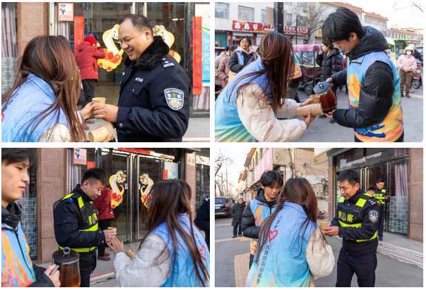 与此同时,服务队还提供了热腾腾的姜糖水,以实际行动表达了对警察们辛勤工作的敬意。