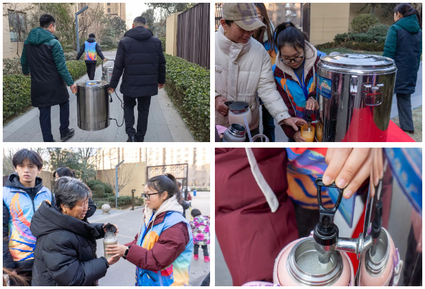 服务队提前准备了饮品并为当地居民发放,彰显了其对居民们的关爱与祝福。