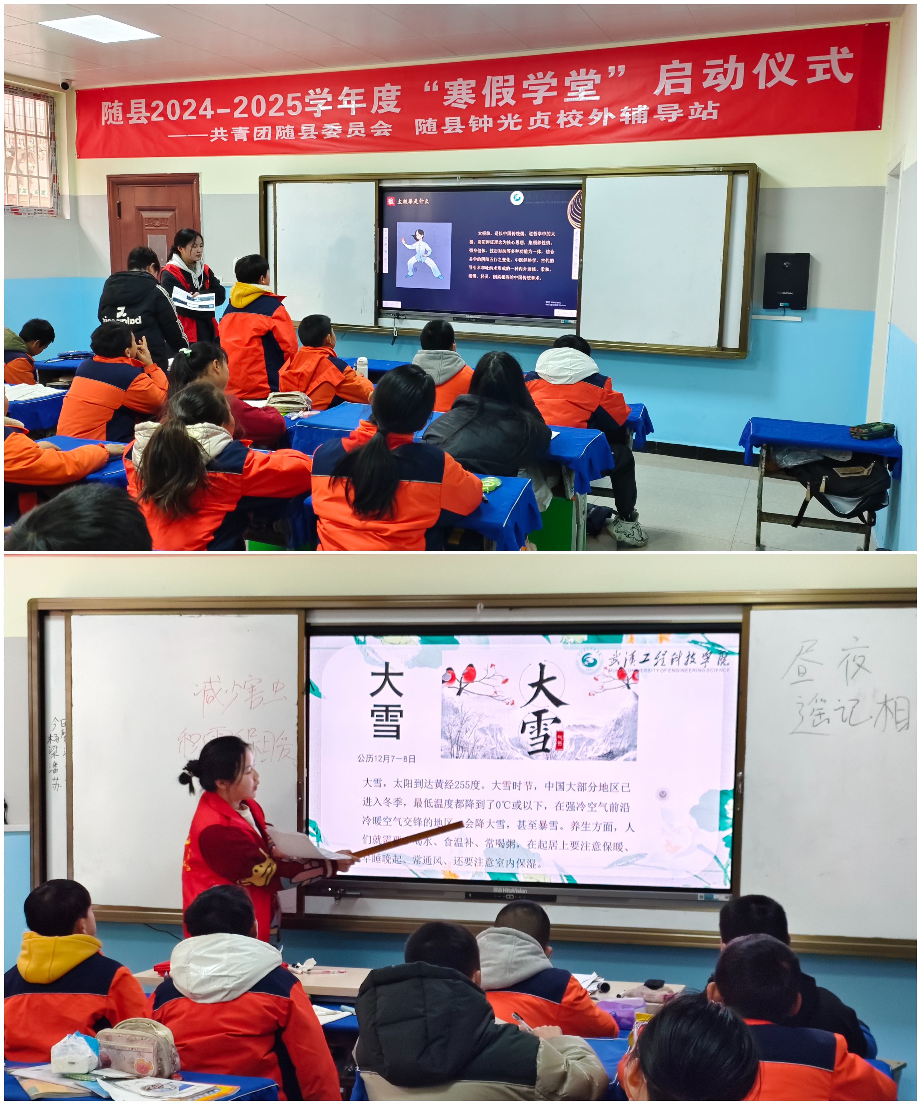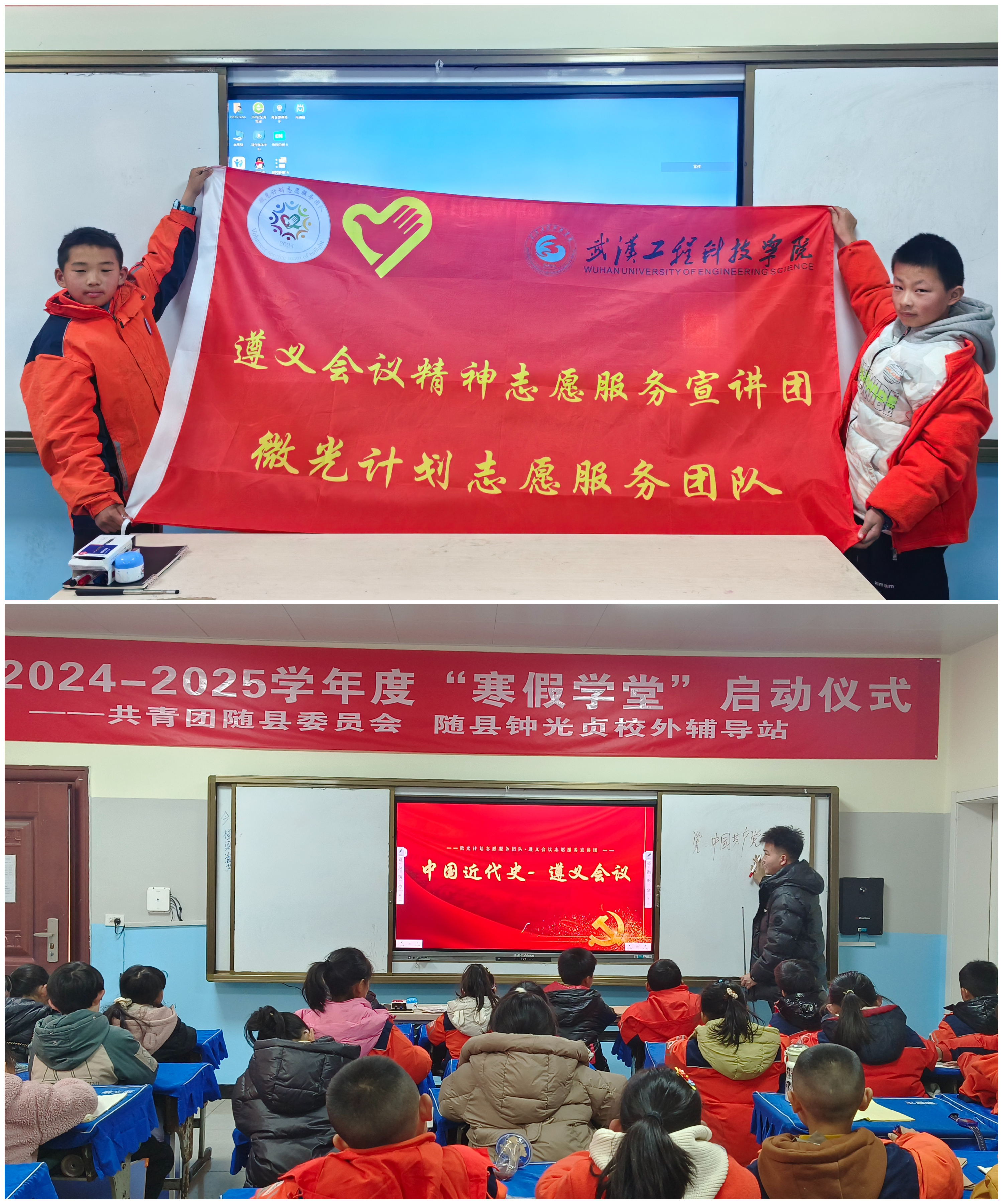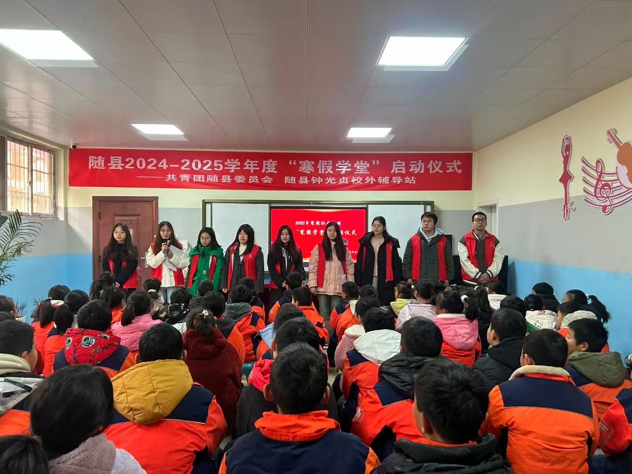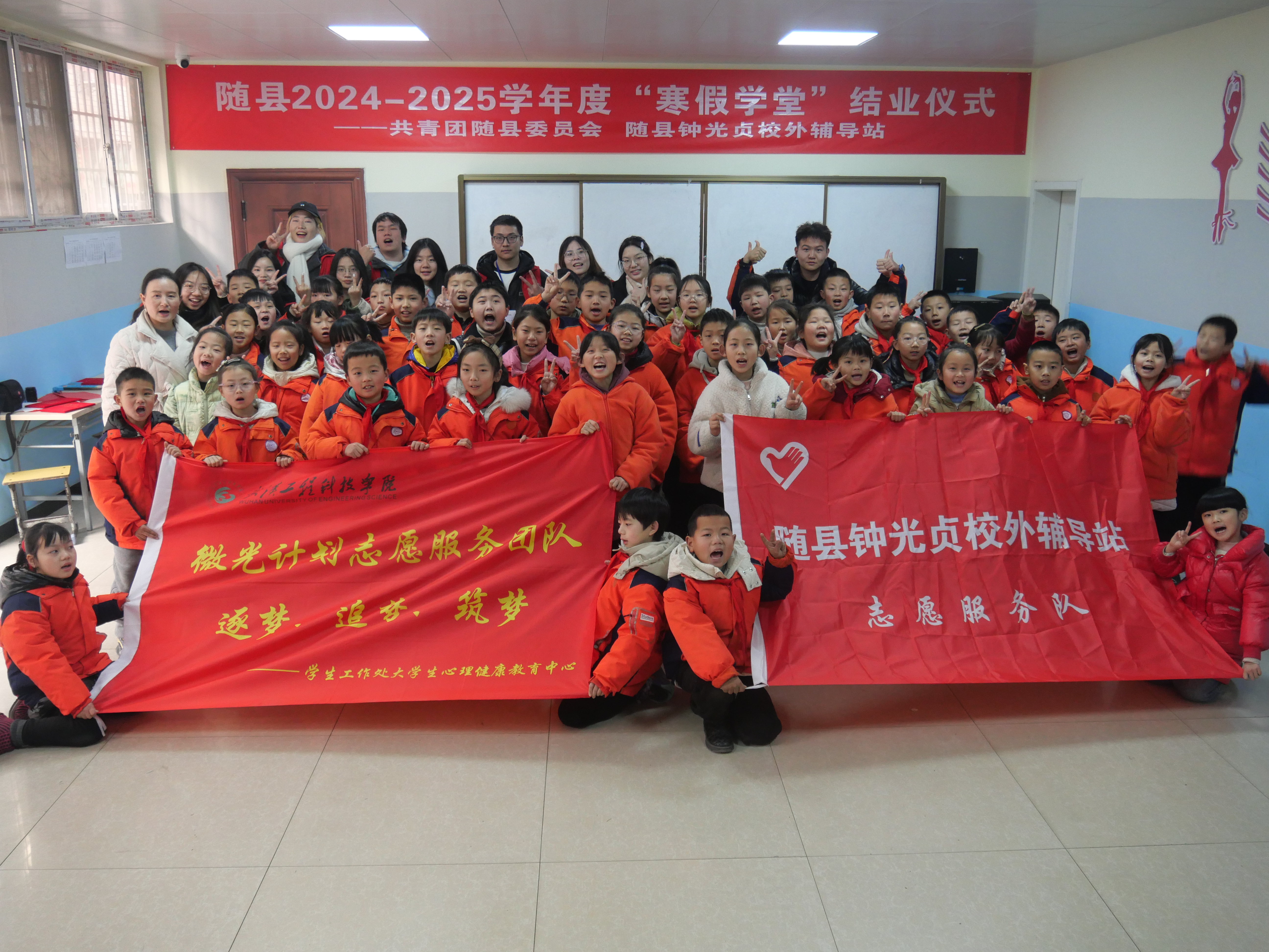 共青团随县委员会和我校高度重视本次社会实践活动,在学校大学生心理健康教育中心指导下,“微光计划志愿服务团队”精心策划、积极筹备,为随县厉山镇中心小学的孩子们带来了一场别具一格、富有成效的 “寒假学堂”。