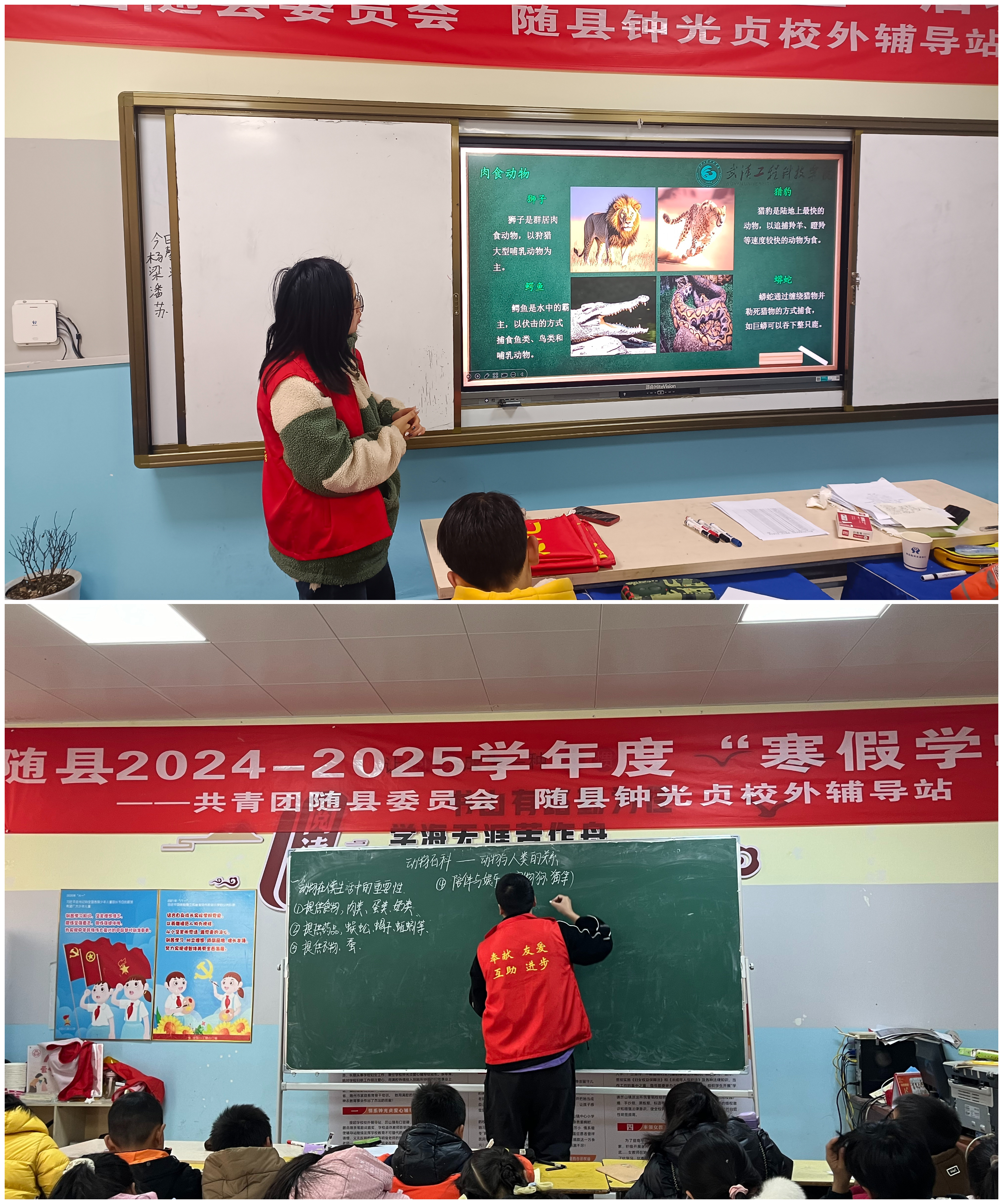 为丰富学生寒假生活,寒假期间,英国beat365官方网站“微光计划志愿服务团队”协随县厉山镇中心小学“钟光贞校外辅导站”,共同举办了一场“寒假学堂”活动。