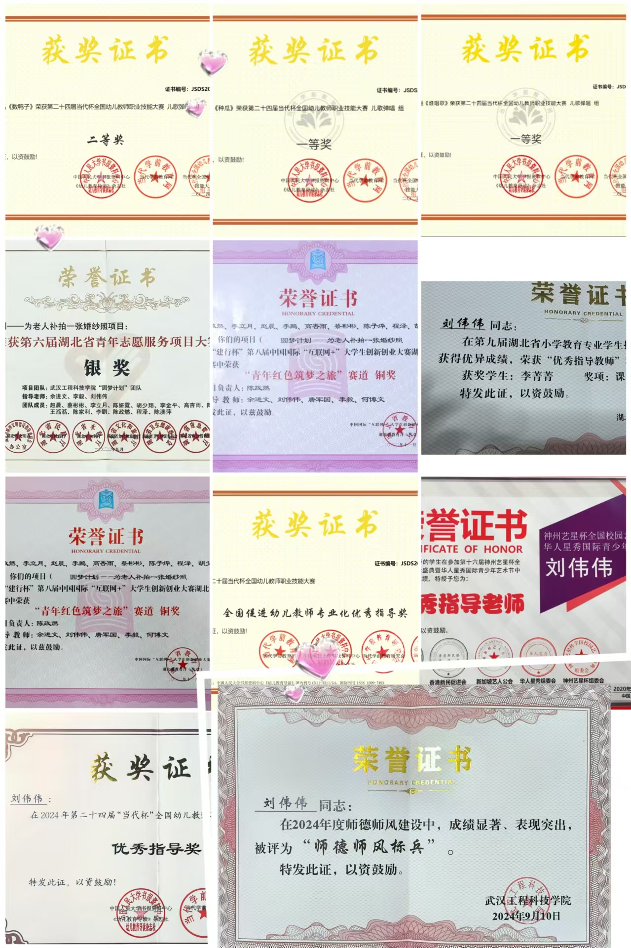 刘伟伟深刻洞悉实践对于学生成长的关键意义,不遗余力地鼓励学生参与各类竞赛。在她的悉心指导下,学生团队获得多项荣誉,包括湖北省教育厅第八届“互联网+”大赛铜奖、第九届“互联网+”大赛银奖、湖北省第八届大学生艺术节优秀文艺节目二等奖等。这一系列荣誉不仅是对她的专业知识以及教学能力的高度认可,更是她在音乐教育领域辛勤耕耘、默默奉献的有力见证。