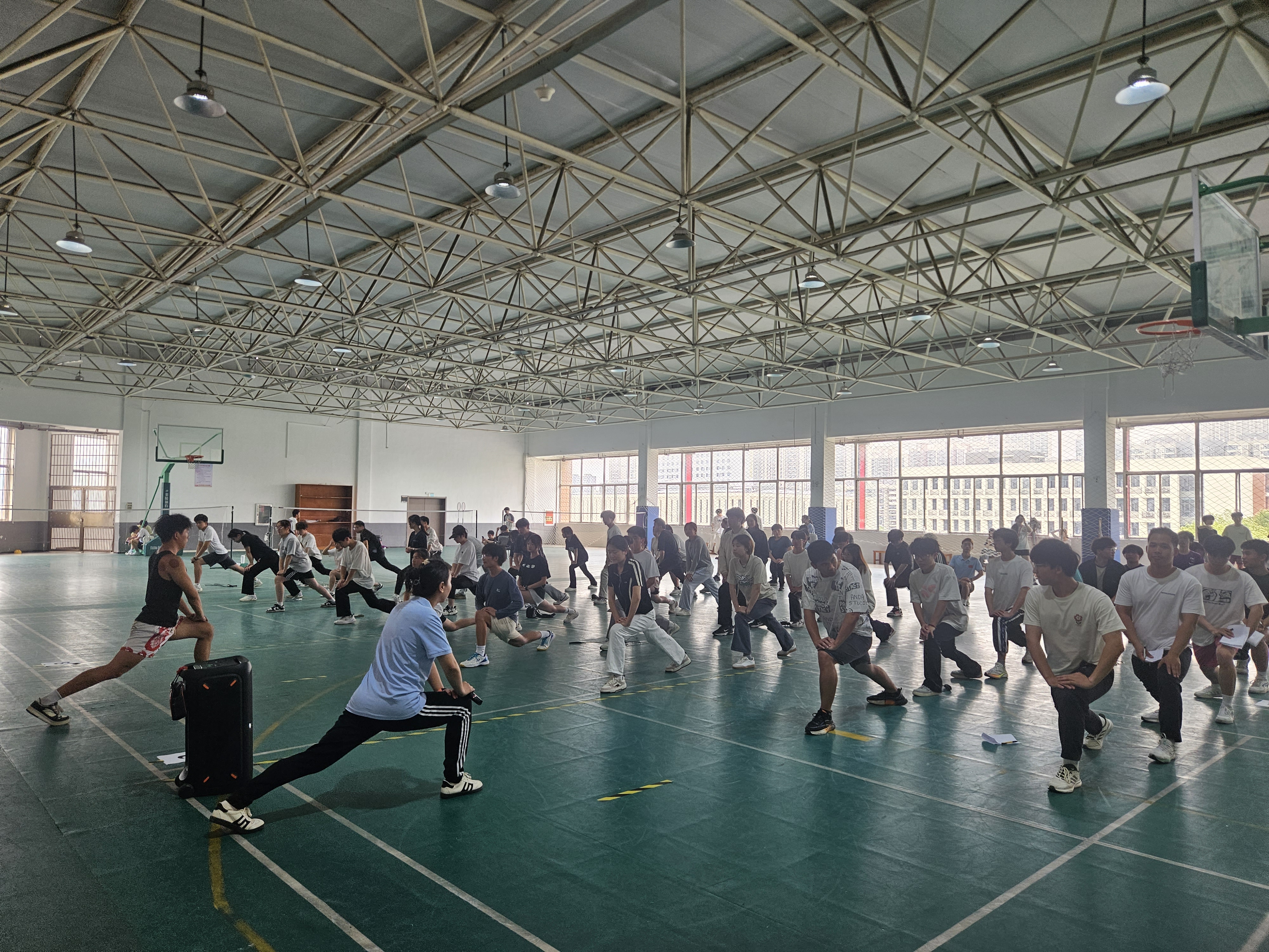 为帮助选手以最佳状态投入比赛,现场组织了热身环节。在指导人员的带领下,参赛选手们有序列队,拉伸、跳跃等动作充分激活身体机能。