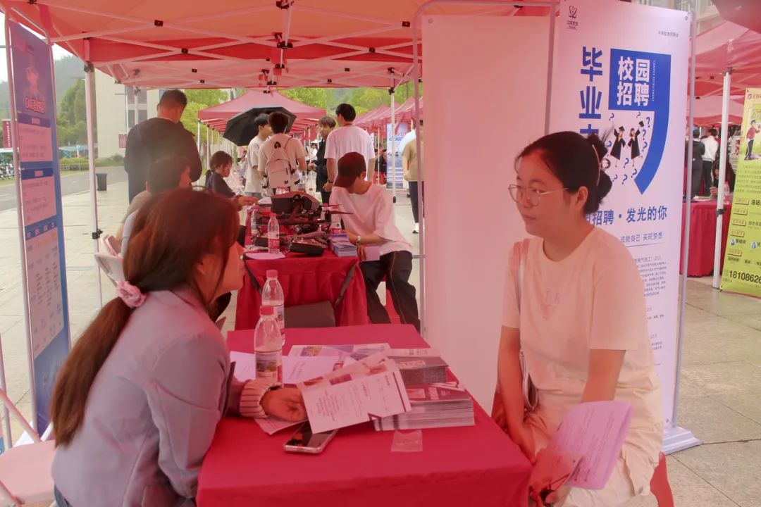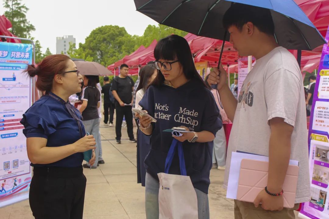 招聘会现场热闹非凡,阴雨天气也阻挡不了毕业生们的求职热情,他们带着简历早早抵达,穿梭在展位之间,主动询问心仪岗位详情。“这次学校招聘会来访企业有很多,未来几年里,我的职业规划更加倾向于收入稳定的岗位。”2024级汉语言文学专业的饶雯渲说道。2023级计算机网络技术专业李宝丰在询问完心仪岗位后表示,自己在未来将根据专业对口岗位,更加系统地学习专业理论知识,并鼓励低年级学子求职要自信,相信努力终会成功。“面对毕业第一份工作我更希望是具有挑战性的,这样可以在工作中不断提升自身能力,努力闯一闯。”2022级软件工程专业李祥泰表示。