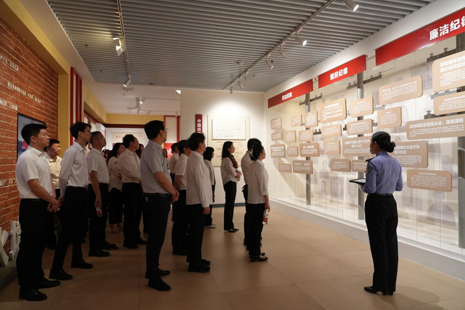 在警示教育展厅,全体党员干部接受了“初心之问”“蚁穴之害”“围猎之祸”“囹圄之叹”四个主题的警示教育,并身临其境地观看了环幕短片《监狱的一天》。通过讲解员对各类违纪违法典型案例的深度剖析,大家更为系统地了解了全面从严治党的发展历程、“四风”问题的变异特征和腐败行为的演变规律,时刻警示党员干部们在心中牢牢筑起作风建设“防火墙”,全面提升落实中央八项规定精神的政治自觉,持续强化守规矩、明界限、担使命的行动自觉。