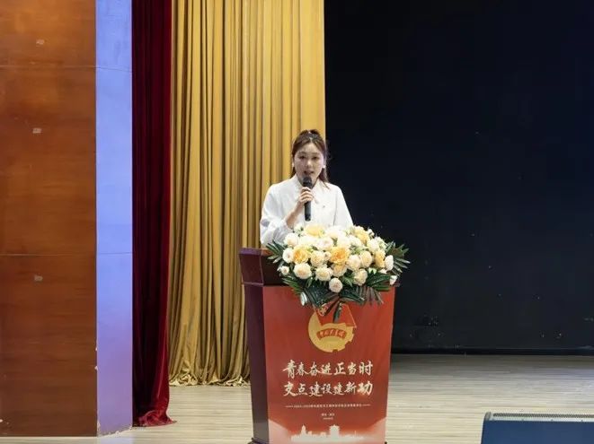 22级汉语言文学专业的向韵亦作为优秀学生代表发言。她以自身经历展现五四精神对她的引领作用。在信仰的指引下,她投身志愿服务传承非遗,让青春于实践中闪耀;积极参与学科竞赛屡获佳绩,用奋斗赋予青春的璀璨。她寄语学弟学妹将五四精神融入学习与生活,在校园里怀揣梦想、脚踏实地,以信仰为帆、实践作桨、奋斗当风,在时代浪潮中扬起青春的华丽征帆,绽放耀眼光芒。