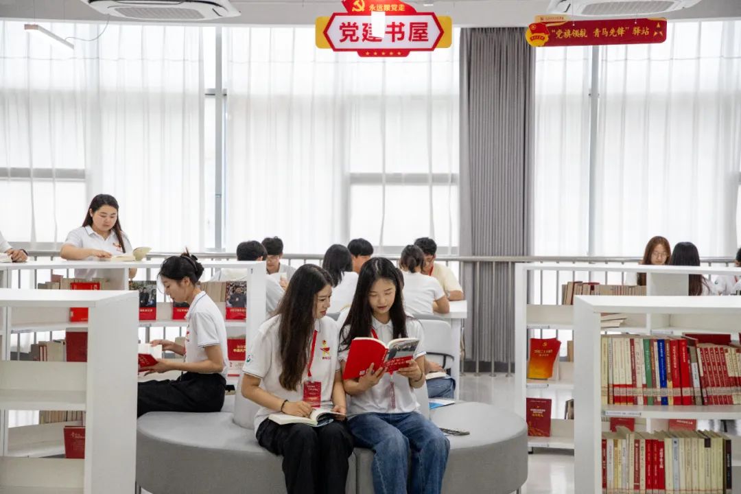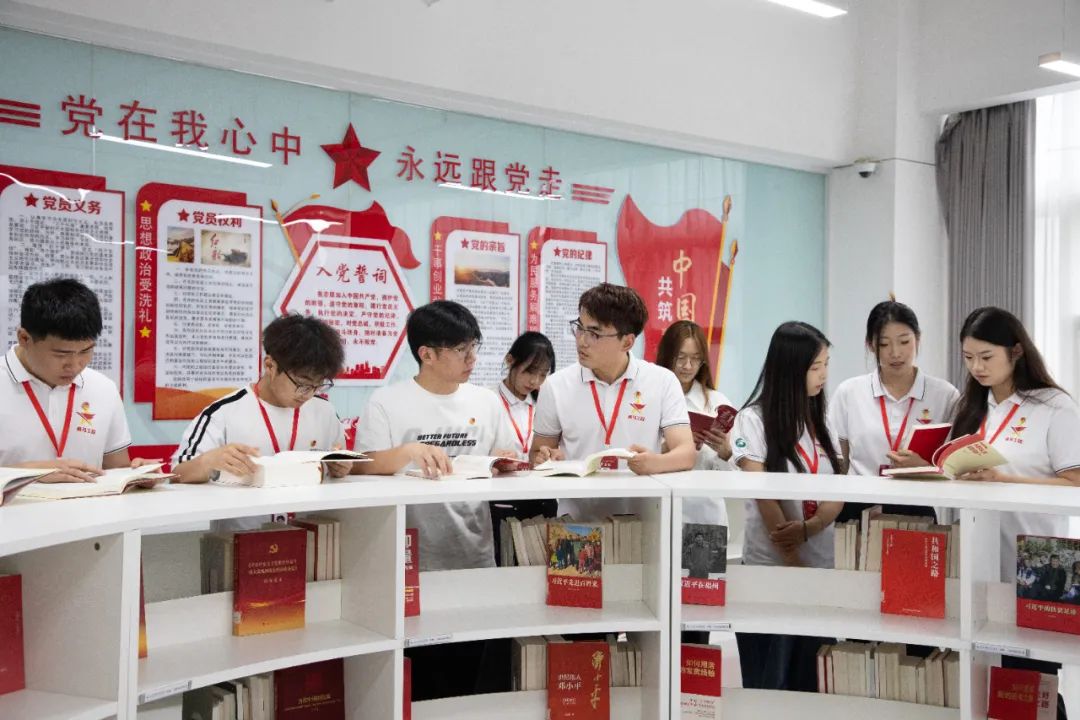 仪式结束后,全体参会人员移步图书馆四楼党建书屋参观学习。至此,“青马先锋”驿站揭牌仪式圆满完成。