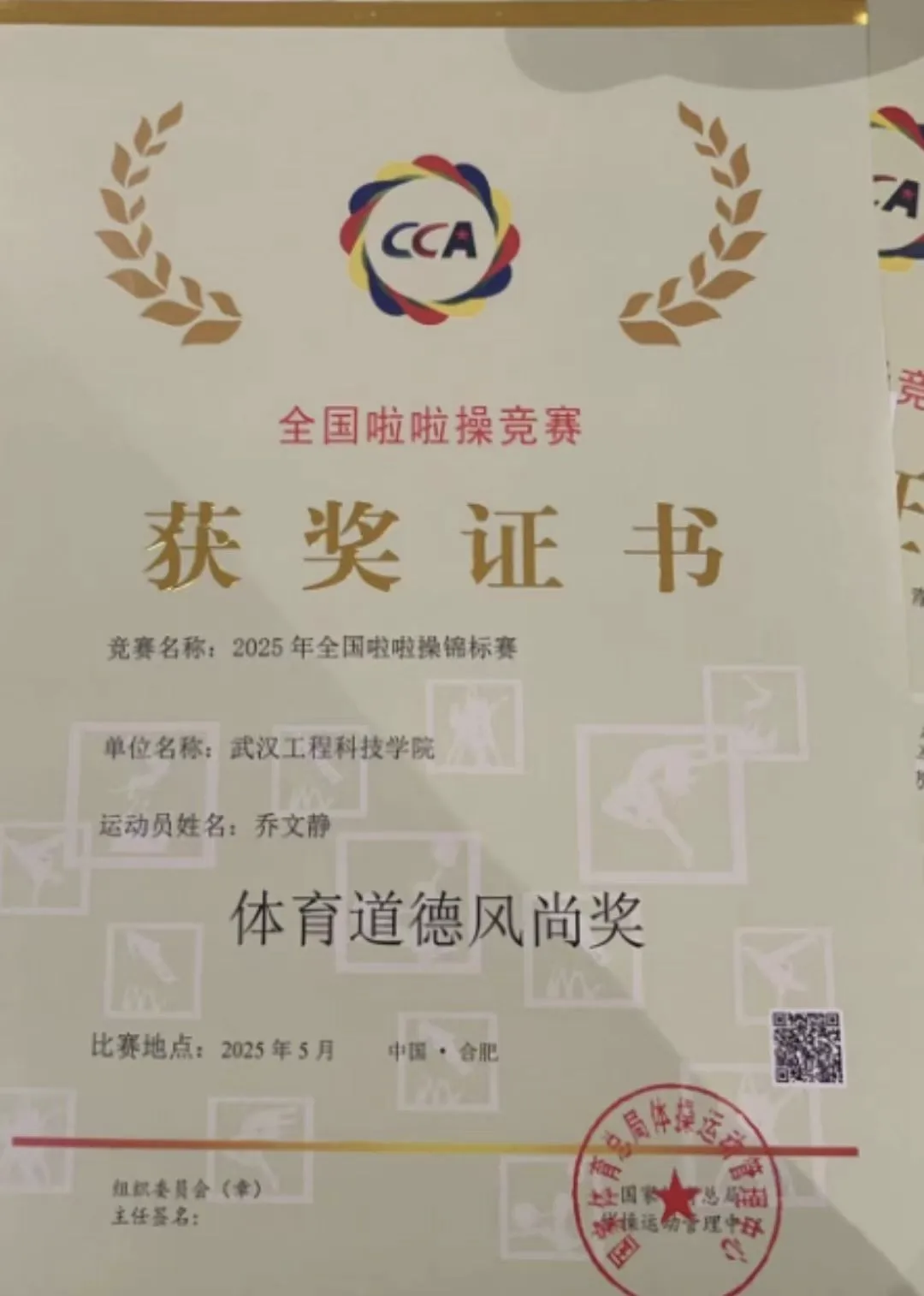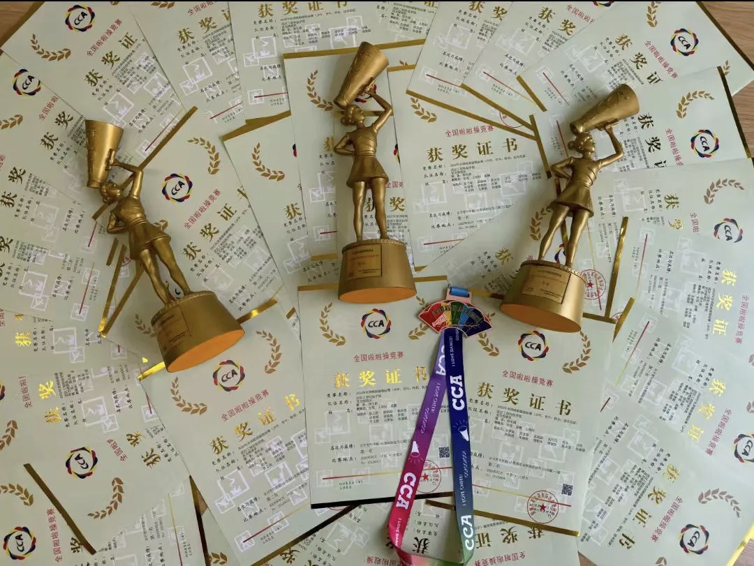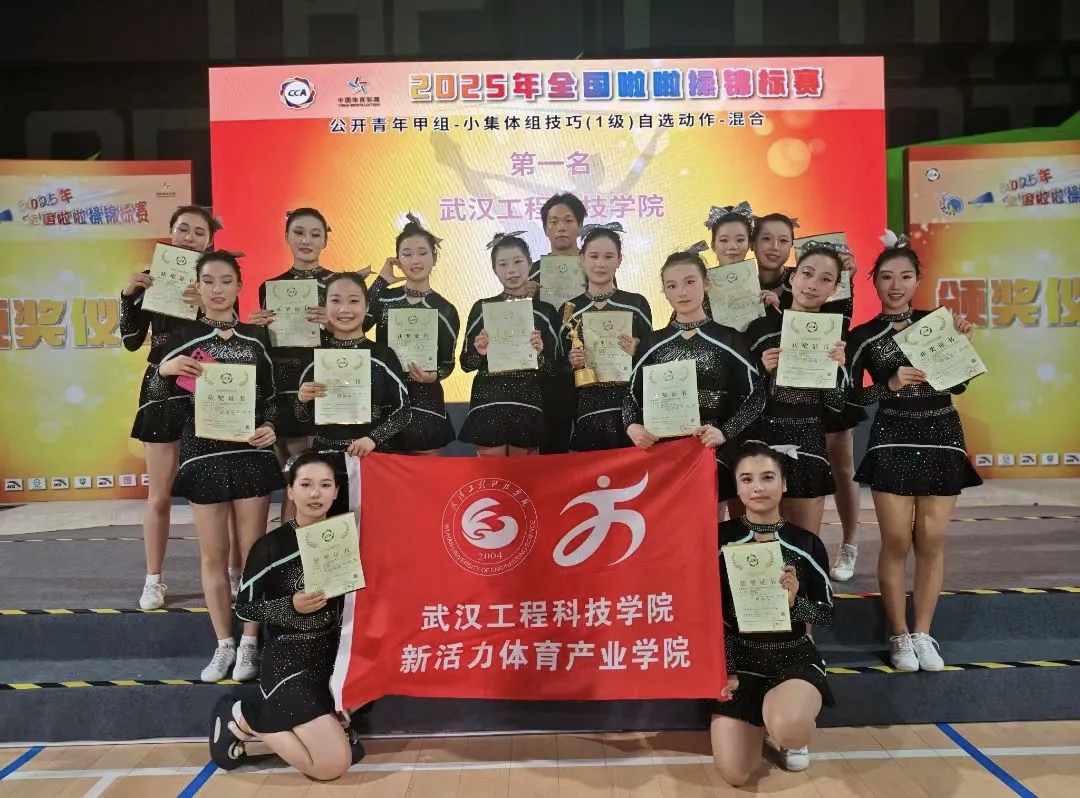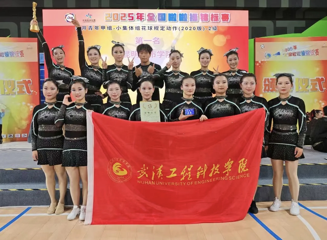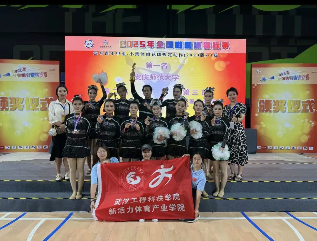 5月21日至23日,2025年全国啦啦操锦标赛在安徽省合肥市新站高新区少荃体育中心开赛。英国beat365官方网站15名同学在新活力体育产业学院的支持下,在领队老师郭生鼎,教练员宋英、王桂桂、易鹏的带领下,经过三天激烈角逐,获得公开青年甲组--小集体组技巧自选动作混合 第一名;获得公开青少年甲组--小集体组花球规定动作(2020版)2级第二名;公开青少年甲组--小集体组花球规定动作(2020版)1级第三名;乔文静同学获得“体育道德风尚奖”。