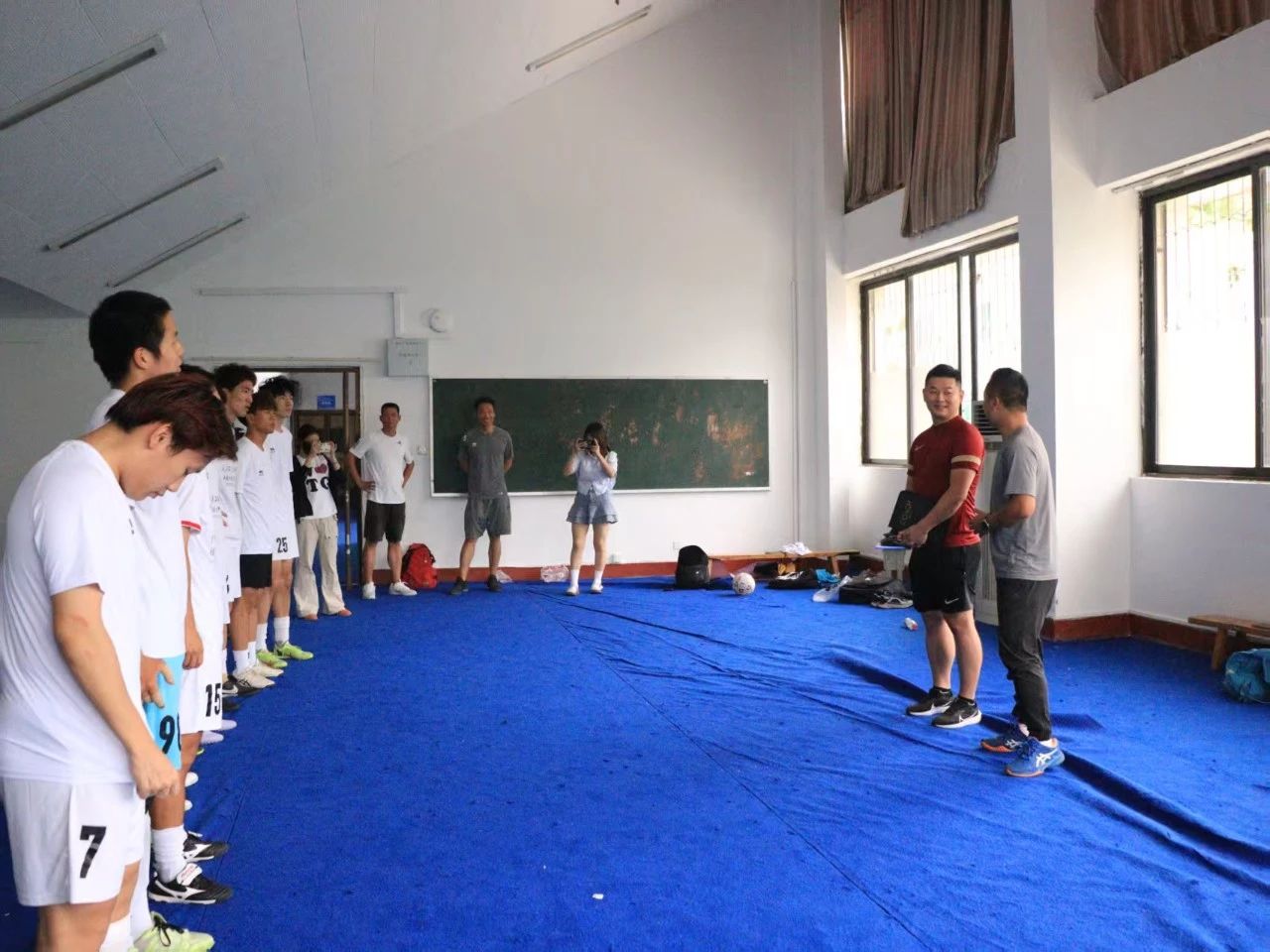 英国beat365官方网站男子五人制足球队由13名来自我校各学院的优秀足球运动员组成,校体委办公室主任郭生鼎老师担任领队,柳晨老师担任主教练,曹鹏飞老师和赵玉武老师组成教练组。队伍在比赛前进行了高强度的备战,严抓体能,并进行了多场热身赛让队员能够尽快适应比赛节奏。在正式比赛中武工院男足作风顽强,韧性十足,最终以不败的战绩夺冠。新活力体育产业学院为队伍提供了全方位的强力支持,并邀请前中国男子室内五人制足球队国脚孙俊亲临指导。