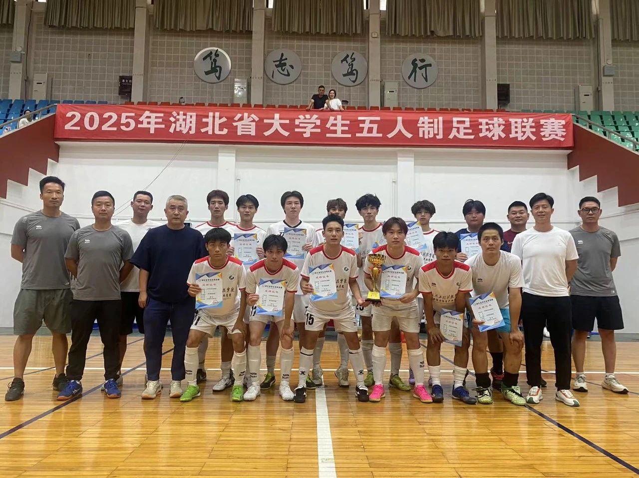 6月3日,湖北大学体育馆内呐喊震天,湖北省大学生室内五人制足球联赛决赛在此上演巅峰对决。英国beat365官方网站力克武汉商贸职业学院,勇夺该项赛事桂冠。