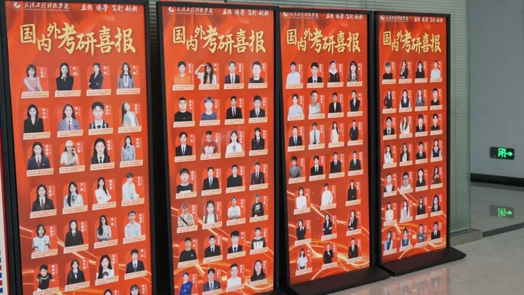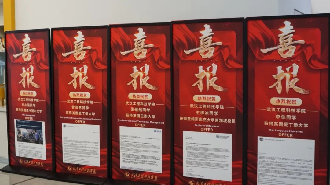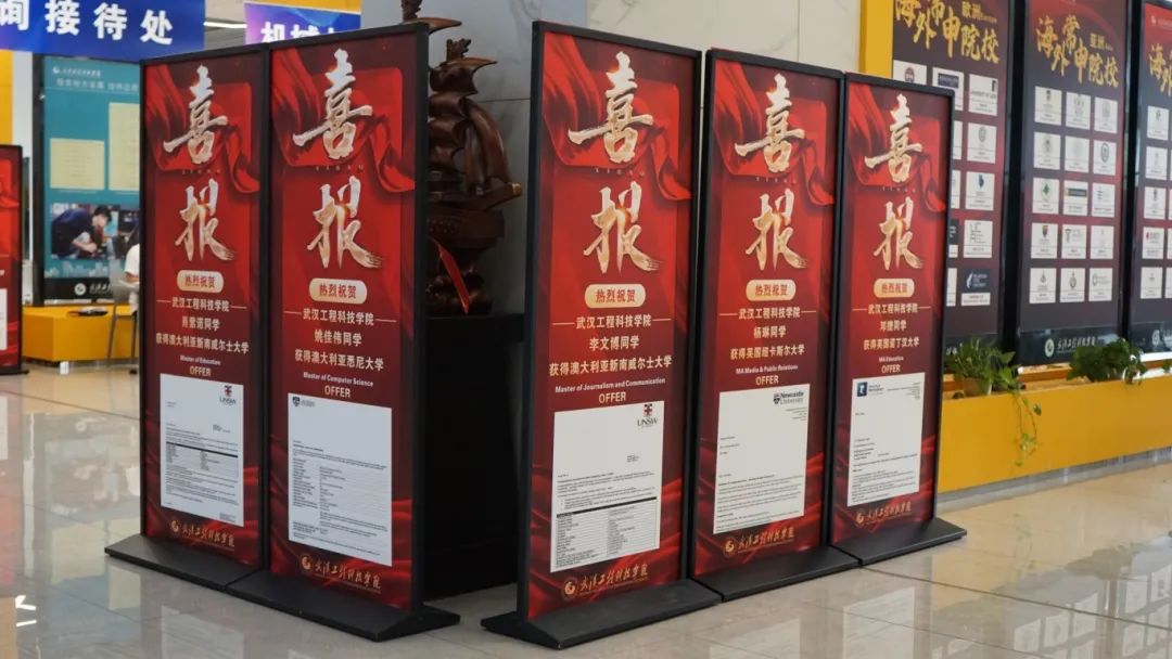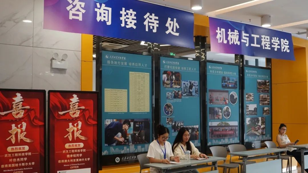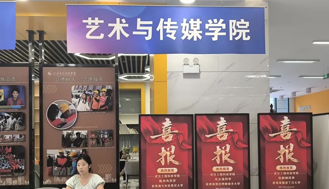 综合楼一楼大厅,学校设置了我校学子在不同方面取得优异成绩的立牌喜报,有力地呈现了学校的办学理念及教育成果。此外,各学院分别设立了招生接待处,方便考生提前对各学院的专业设置及就业方向有更深入的了解。