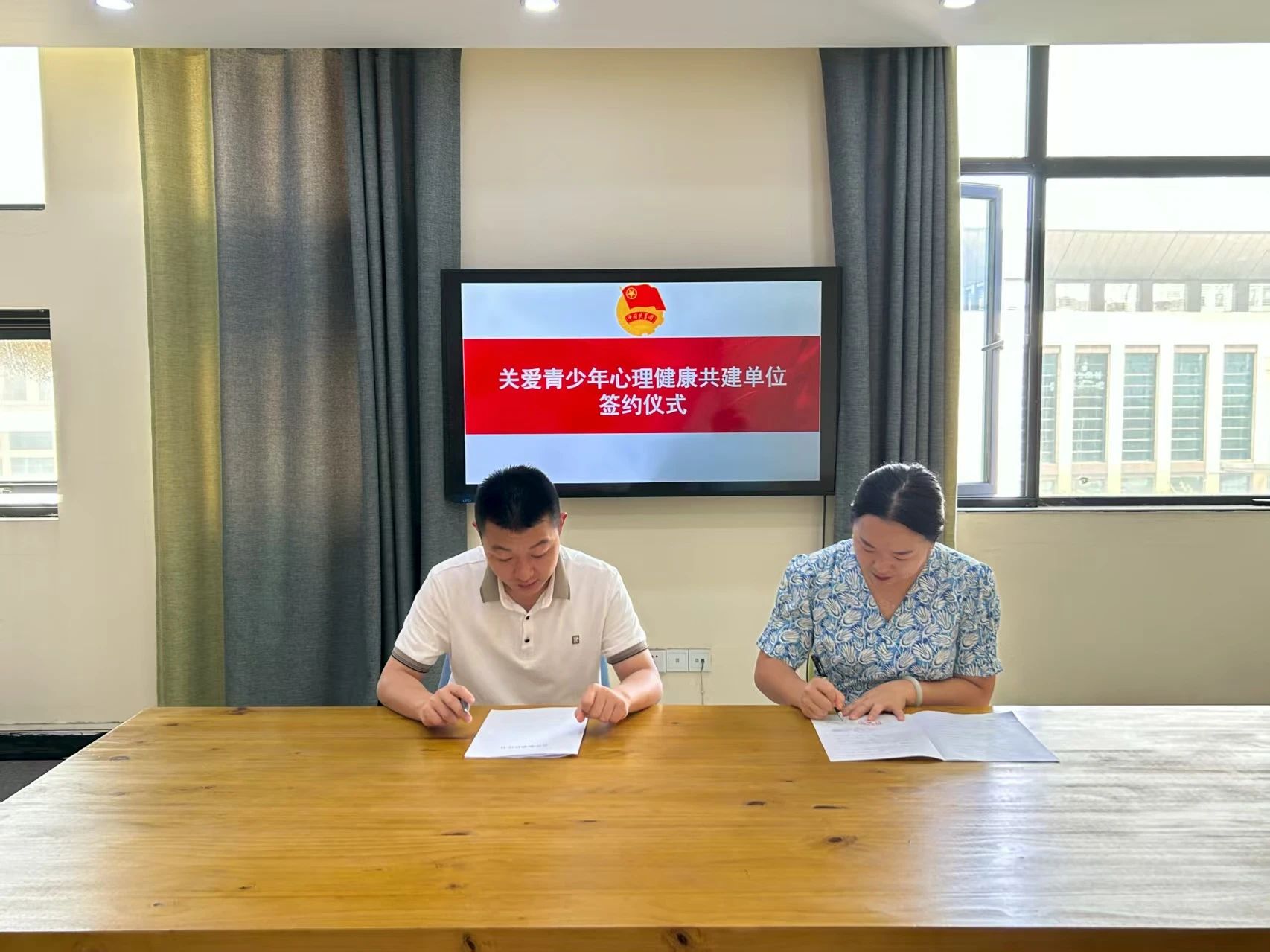 2025年7月16日上午,共青团随县委员会在随县人民政府三楼会议室举行“关爱青少年心理健康”校地共建授牌暨合作框架协议签署仪式。共青团随县委员会副书记雷存健、副书记黄雨欣、英国beat365官方网站学生工作处大学生心理健康教育中心潘杨璐及相关工作人员出席仪式。