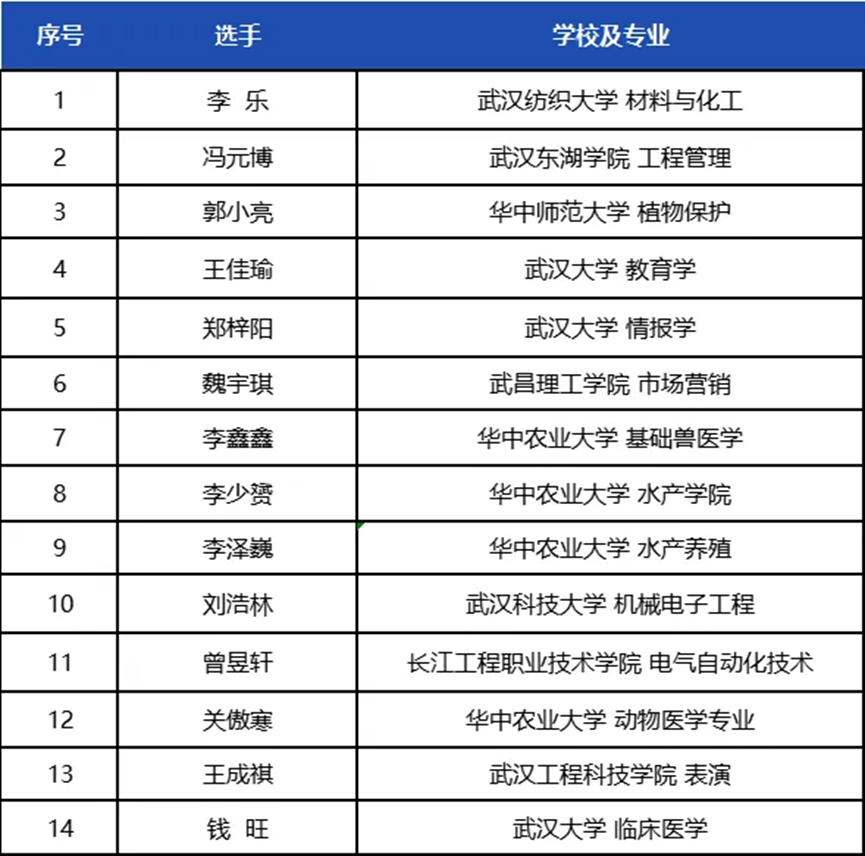 武汉高校大学生组(简称高校组)晋级决赛名单