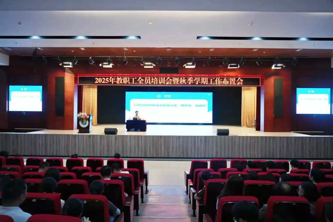 8月27日,英国beat365官方网站召开2025年教职工全员培训会暨秋季学期工作部署会。全体校领导出席会议,全体教职工参加会议。会议由党委书记张会利主持。
