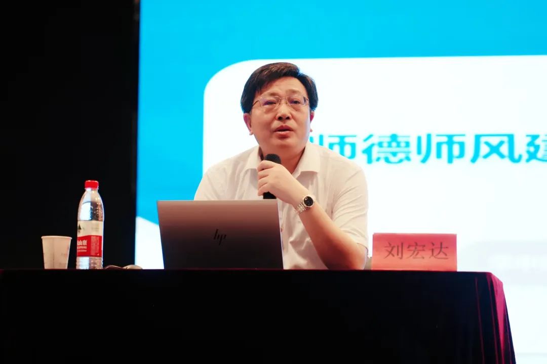 刘宏达教授以习近平总书记关于教师队伍与师德师风建设的重要论述为引,从加强师德师风建设的根本前提、加强师德师风建设的核心要义、构建高水平师德师风建设体系等三个方面作《以师德师风建设涵养政治家、教育家、战略家》的专题报告。他表示,教育家精神成为广大教师的自觉追求。他指出,高水平的师德师风建设体系应包括理论武装体系、学科教学体系、日常教育体系、管理服务体系、安全稳定体系、队伍建设体系、评估督导体系、技术赋能体系等方面。他号召全体教师善于从政治上看问题,争当思想铸魂的政治家;大力弘扬教育家精神,争当教书育人的教育家;服务高质量发展战略,争当教育强国的战略家。