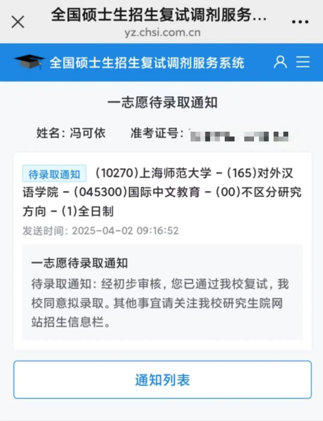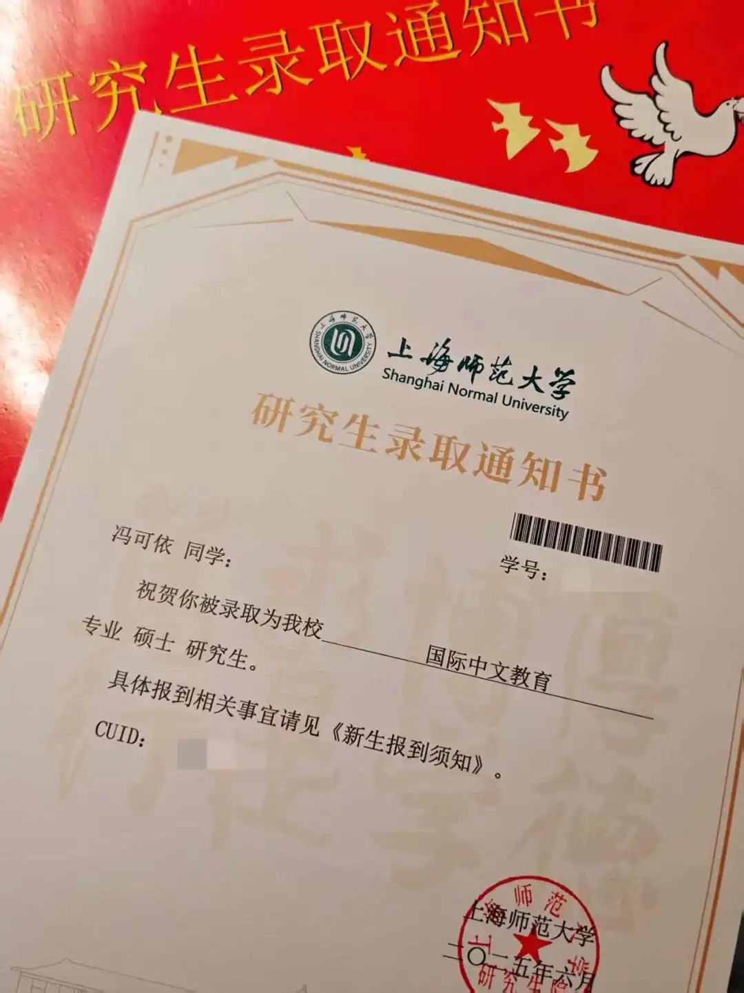 对于自己的学习和生活,冯可依对每一步都有着清晰的规划,考上海师范大学国际中文教育专业的研究生是她经过深思熟虑后的决定,她认为该校的教育能够为其在未来国际教育事业方面奠定坚实基础,这是她未来道路上的最佳动力。冯可依直言:“一是因为家里定居在上海,二是因为这个学校一直是我所向往的,所以这次也算是圆梦了!”除去考取研究生外,冯可依还应聘了兼课教师的职位,朝自己的梦想努力奋斗着。