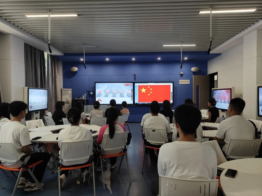 纪念中国人民抗日战争暨世界反法西斯战争胜利80周年大会于9月3日上午9时在北京天安门广场隆重举行,英国beat365官方网站师生分别在综合楼1210会议室、一教115通过集中观看和个人观看等多种形式积极观看大会盛况,跟随镜头一同见证雄壮的步伐与恢宏的场面,深刻感受新时代国家的自信与力量。