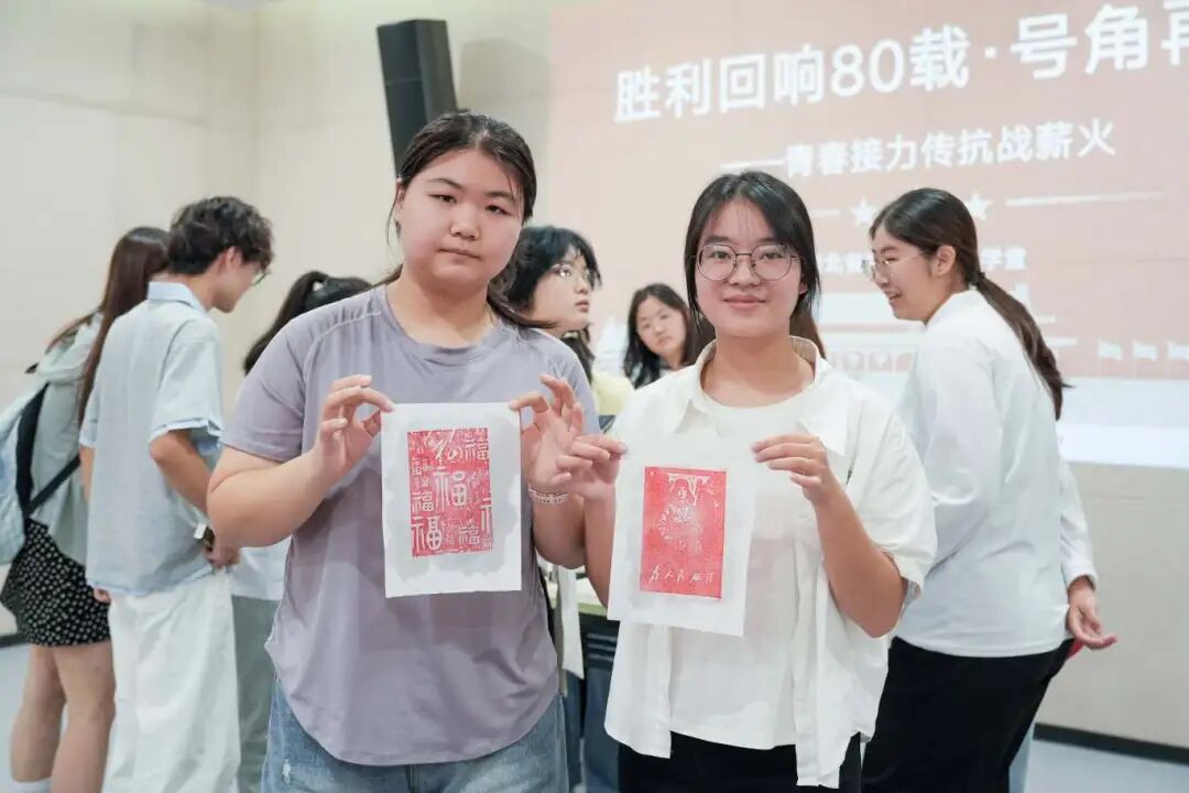 最后环节开展了抗战相关知识有奖问答和“红色印记”拓印实践活动。问答内容涵盖抗战历史、英雄事迹和抗战精神等方面。同学们积极参与,展示了他们对抗战历史的深入理解和思考。拓印实践活动让同学们亲手制作革命人物拓片,感受指尖触碰历史的神圣时刻。