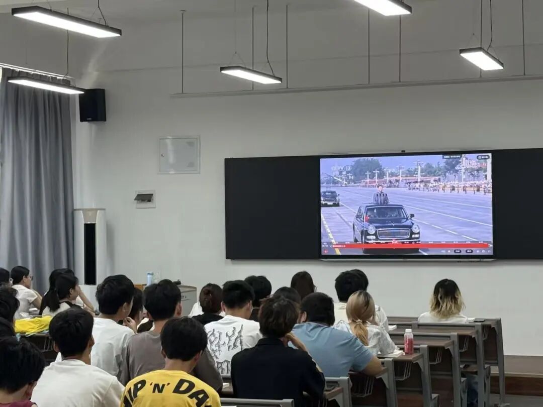 为了将思政小课堂与社会大课堂相结合,历史与现实相映照,我校组织师生集中观看了纪念中国人民抗日战争暨世界反法西斯战争胜利80周年大会阅兵仪式直播。阅兵式上,徒步方队、装备方队和空中梯队依次通过天安门广场,展示了我国强大的国防力量和军队现代化建设成果。学生们深受震撼,接受了一次精神的洗礼。观看阅兵,是对革命历史的深刻回望,更是对初心使命的再次叩问。“这次阅兵,让我更加深刻地认识到,我们今天的幸福生活是多么的来之不易,是无数先烈们用生命和鲜血换来的。”来自24数管本5班的学生杨颖激动地说道。