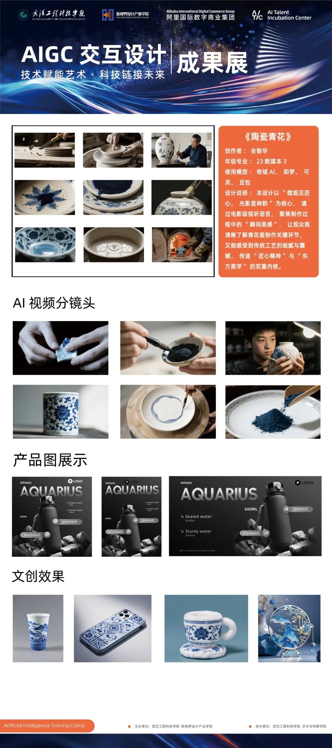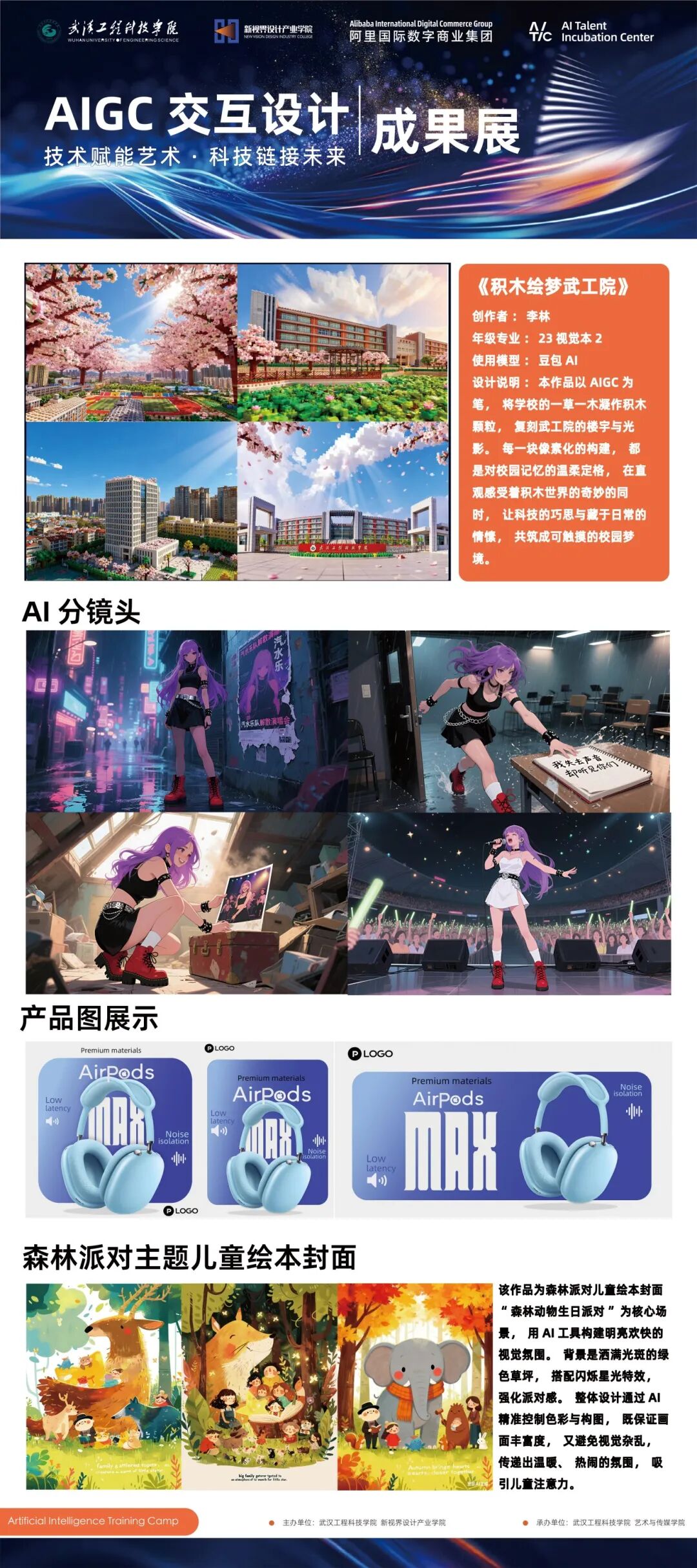 通过此次活动,我们将建立“AITIC 新质人才孵化基地”,满足人工智能设计课程教学需求,实现人工智能技术与课程教学的深度融合。构建“理论+实训+实战”培养体系,提升学生 AIGC 工具应用、创意转化及商业化落地综合能力,培养高素质 AI设计人才。搭建创新创业孵化平台,支持学生参与国际设计竞赛、企业命题项目,培育复合型人才。聚焦 AIGC 与设计教育前沿技术研究,推动信息化教学工具开发与应用,建立跨学科教育资源共享机制。