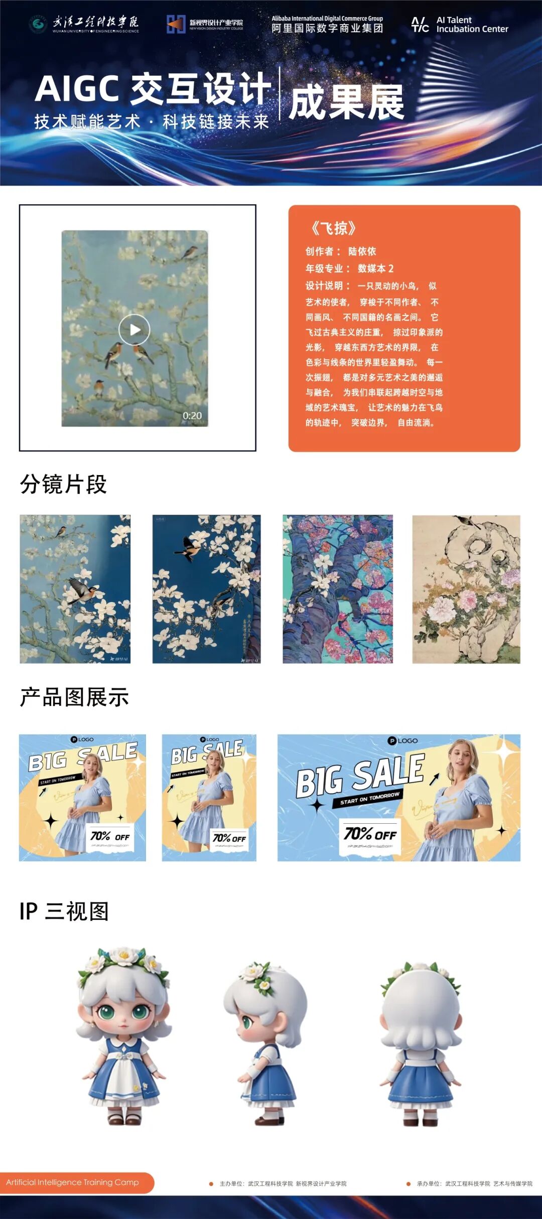 活动中,阿里巴巴技术团队与高校专家为学员提供了专业指导,助力学生掌握AIGC技术的商业化应用路径。工坊活动结束后,一批优秀作品在实训中脱颖而出,展现了产学研融合的创新成果,提升了学生在人工智能与跨境电商交叉领域的竞争力,为社会培养了“新外贸”人才。