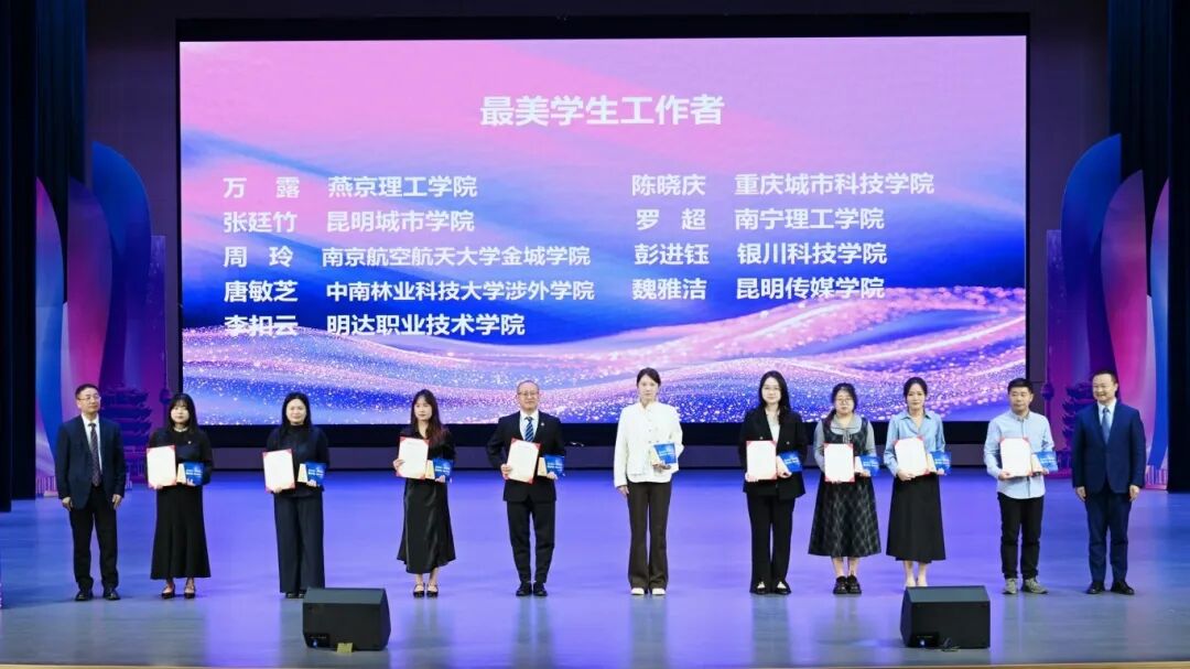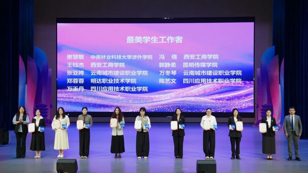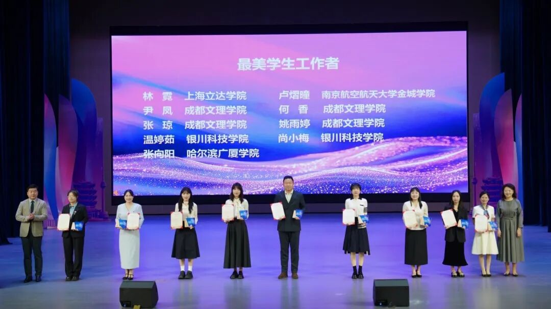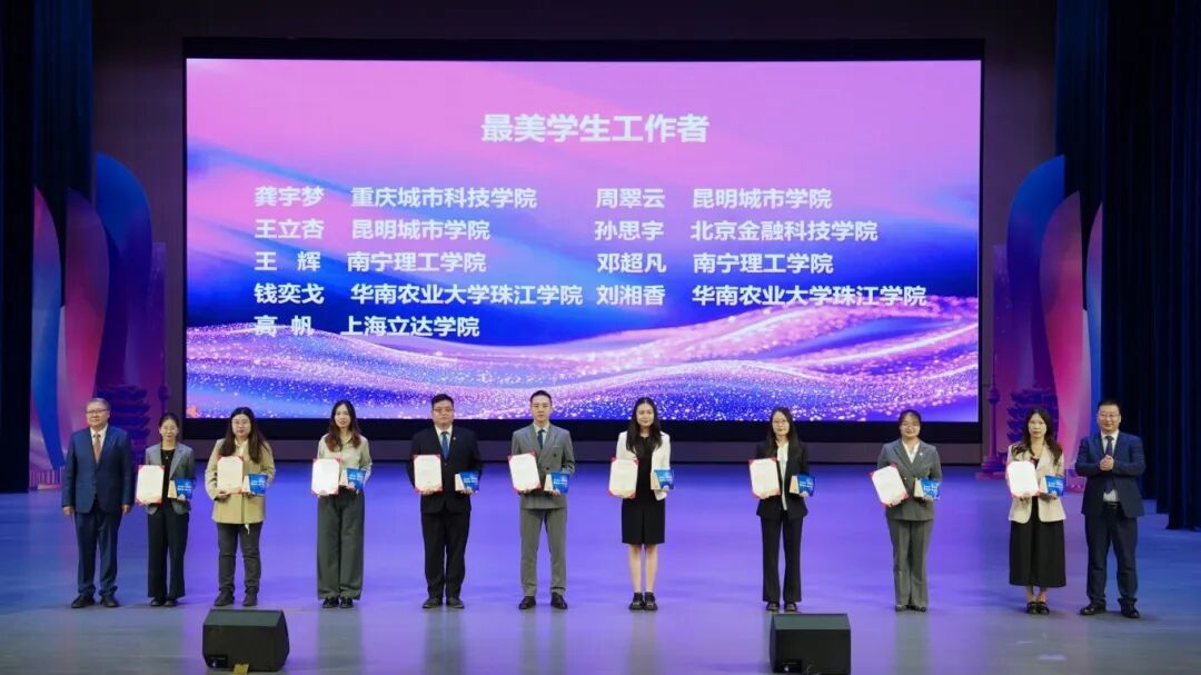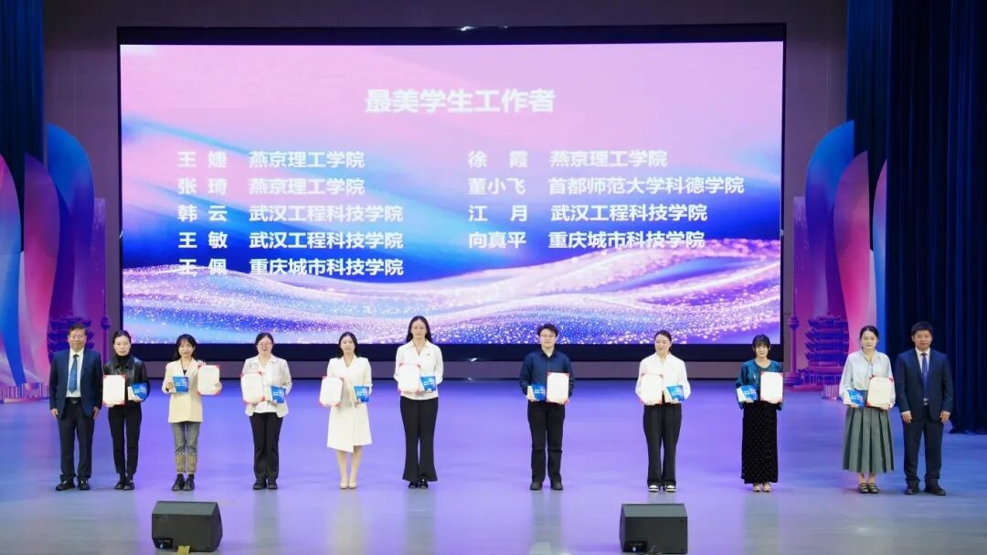 活动宣读《关于表彰2025年“最美学生工作者”的决定》,与会领导分别为获奖选手颁奖。
