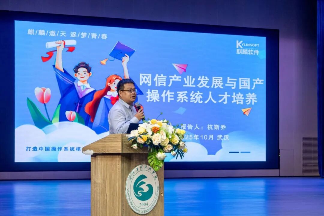 杭斯乔作了题为“网信产业发展与国产操作系统人才培养”的主题分享,他表示,此次合作旨在打通产学研链条,为国产操作系统生态注入创新活力。他特别提到,实训营将围绕系统管理、安全防护、性能优化等核心领域展开,助力学员掌握企业级实战技能。