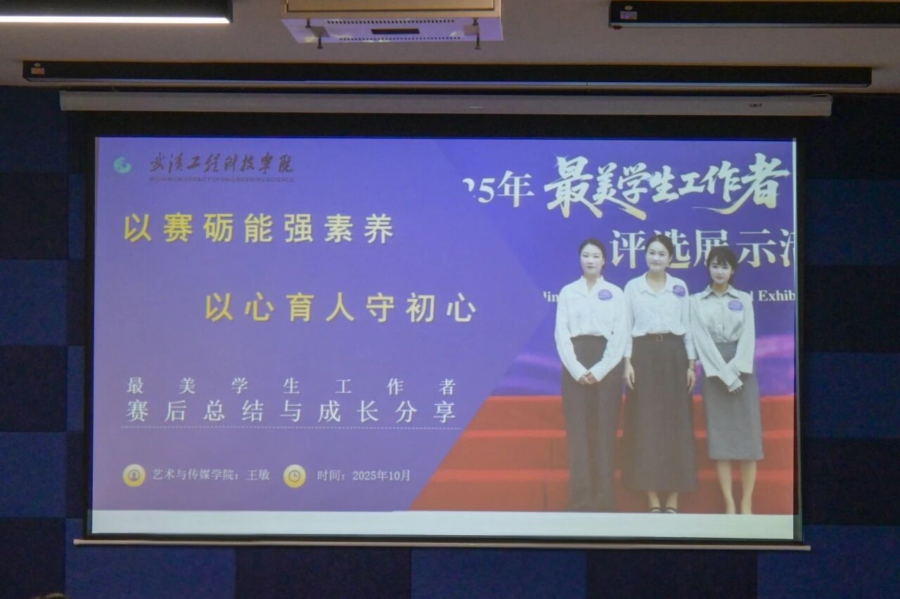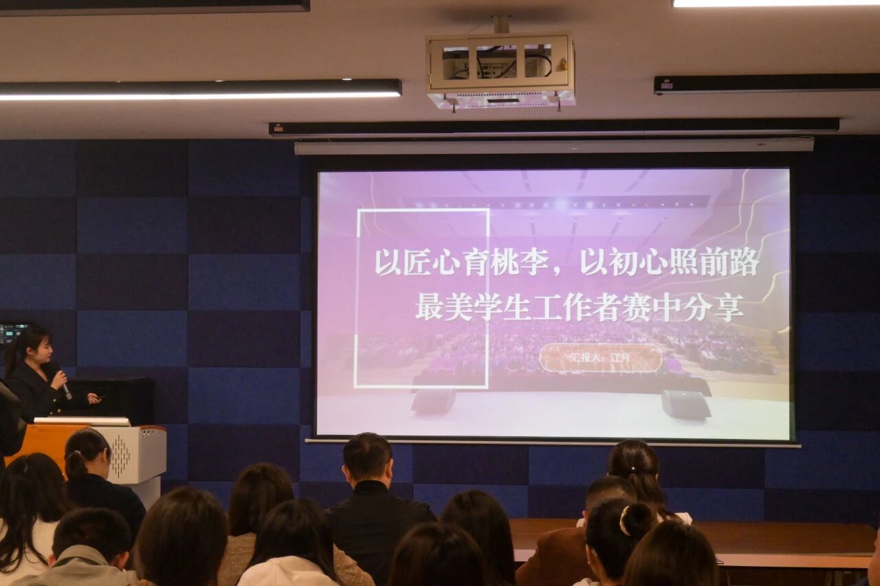 整场分享会以“以赛促建、以赛促学”为主线,邀请了第二届“最美学生工作者”获得者韩云、江月、王敏三位辅导员分别从不同维度系统呈现了参赛历程中的思考与收获。