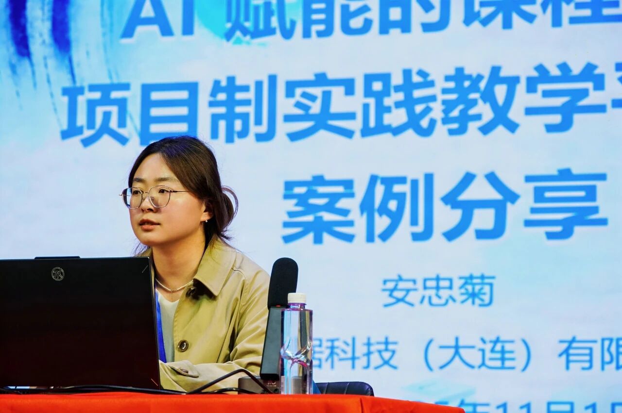 贝尔数据科技(大连)有限公司安忠菊博士作题为《AI赋能的课程贯穿项目制实践教学平台及案例分享》的主题报告。