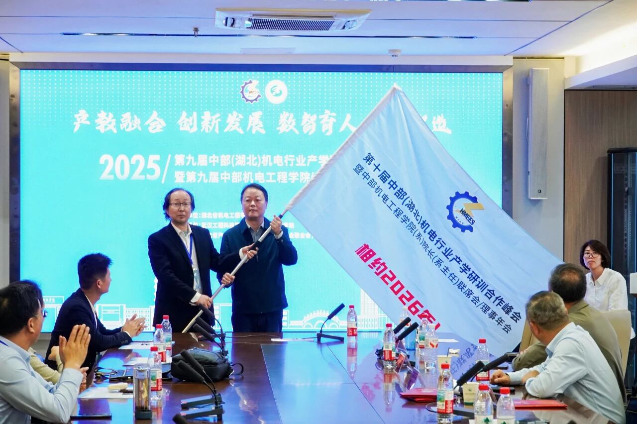 与会代表就本科、职业教育改革方向与发展展开积极研讨,并就下一届大会承办单位进行了提名和表决。大家一致通过2026第十届中部(湖北)机电行业产学研训合作峰会暨第十届中部机电工程学院(系)院长(系主任)联席会将在湖北黄石召开,会议将由湖北理工学院承办。湖北理工学院机电学院院长陶晶从赵大兴会长手中接过会旗,并诚挚邀请各位代表,2026欢聚相约在湖北理工学院,交流思想、分享经验,携手合作、共谋发展!