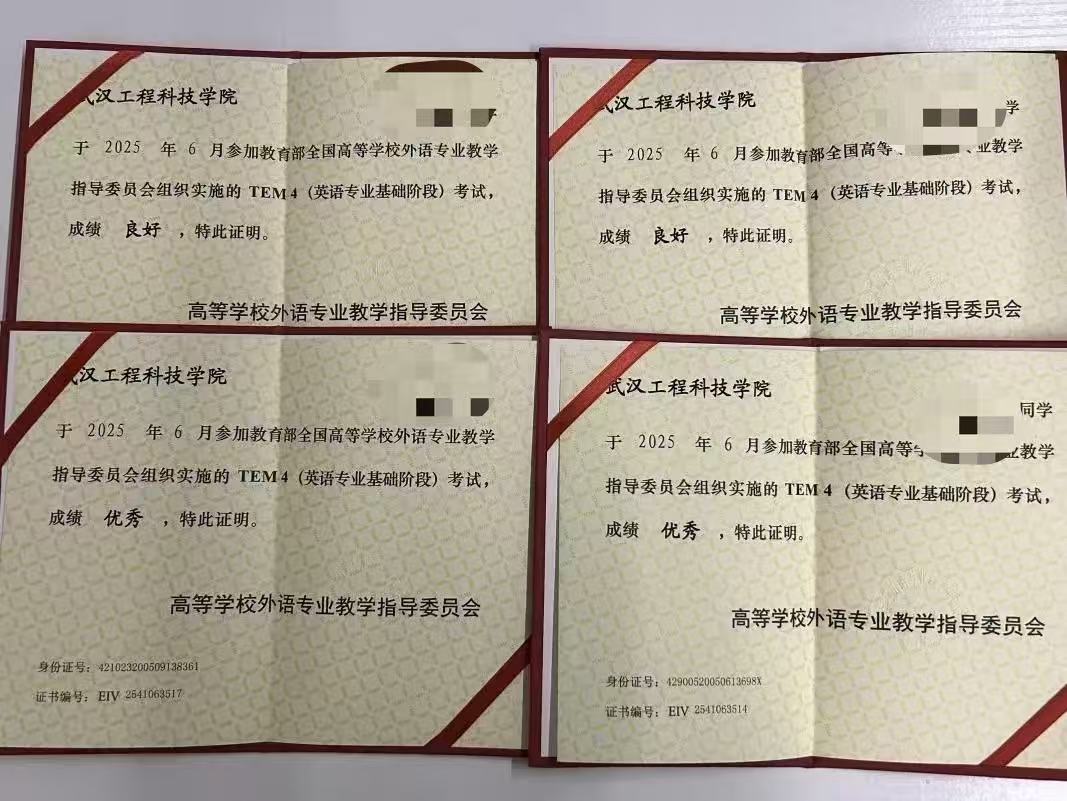 英语专业四级考试(Test for English Majors Grade Four,缩写为TEM-4)是由高校外语专业教学测试办公室组织的全国性英语能力测试,面向英语类专业考生,考试时间为130分钟,满分为100分。在本次的英语专业四级考试中,23级英语专业本科考生通过率为58.62%,良好率(70-79分段)及优秀率(80-89分段)亦表现良好,其中来自23英语本1班的张依恋同学和胡静同学分别以86分、81分荣登前两名。