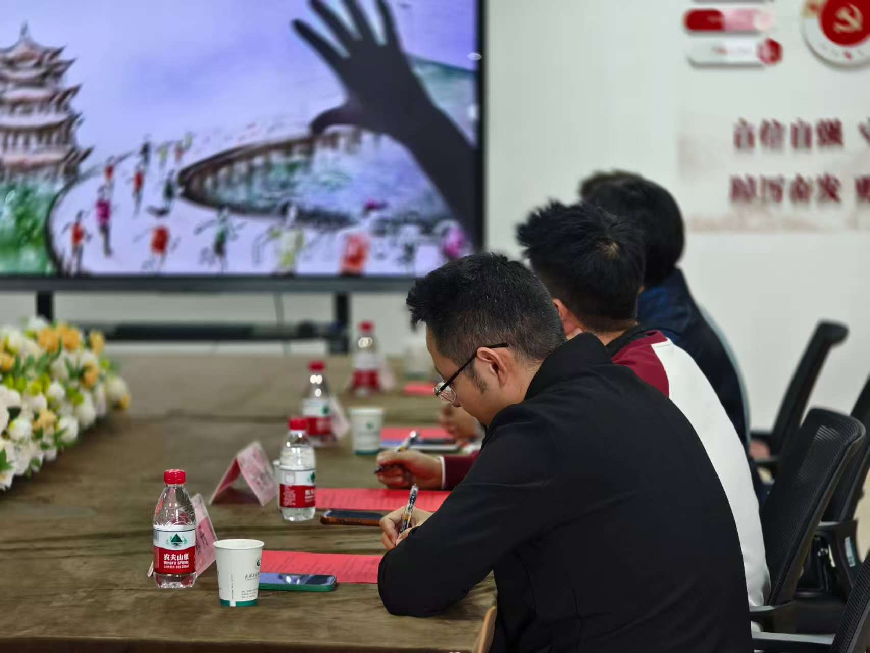 全体参会人员观看了武汉交通广播宣传片,以沉浸式观摩的方式,加深对武汉广播电视台交通广播的了解。