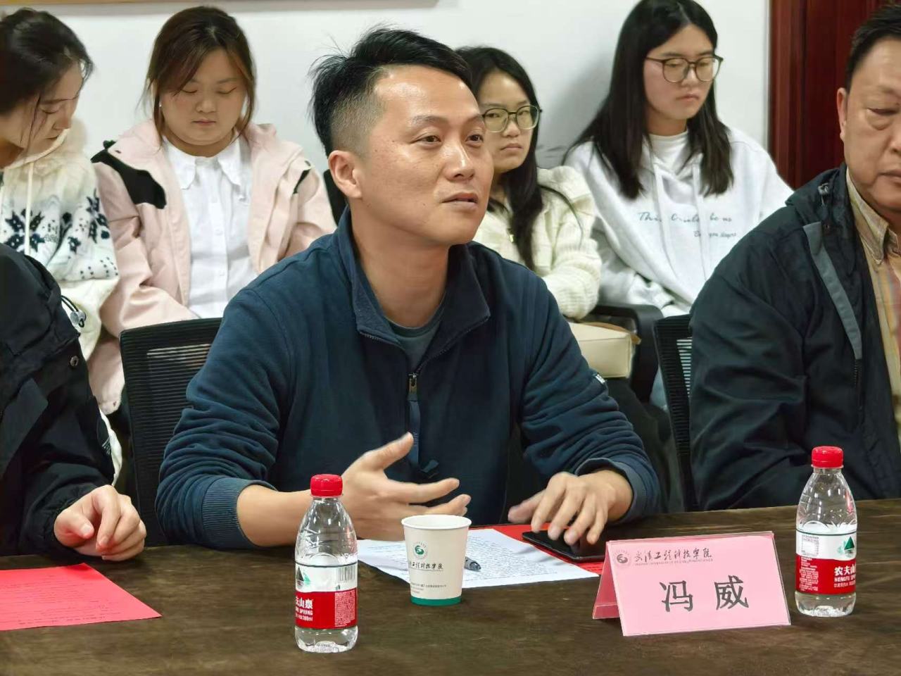 座谈会结束后,沈祥胜与在场同学展开了一场亲切对话。他结合今日交流的收获,对同学们即将到来的实习生涯提出要求,希望大家珍惜学校提供的实践平台,以今日座谈会为起点,主动规划职业发展,在未来的职业生涯中乘风破浪。