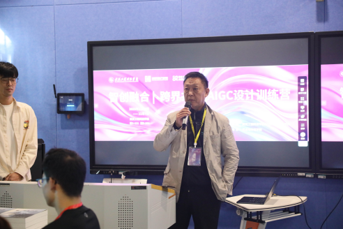 艺术与传媒学院院长沈祥胜、副院长魏敏,Mozo(摹宙)科技/AIGC研习社创始人夏旭、陆乐等业界专家,及学院创意设计系、产品艺术系主任、骨干教师共同出席启幕仪式。沈祥胜在致辞中表示,人工智能正重构设计生态,训练营是学院深化产教融合、推动教育数字化转型的关键举措,鼓励学员将AI能力转化为职业优势。