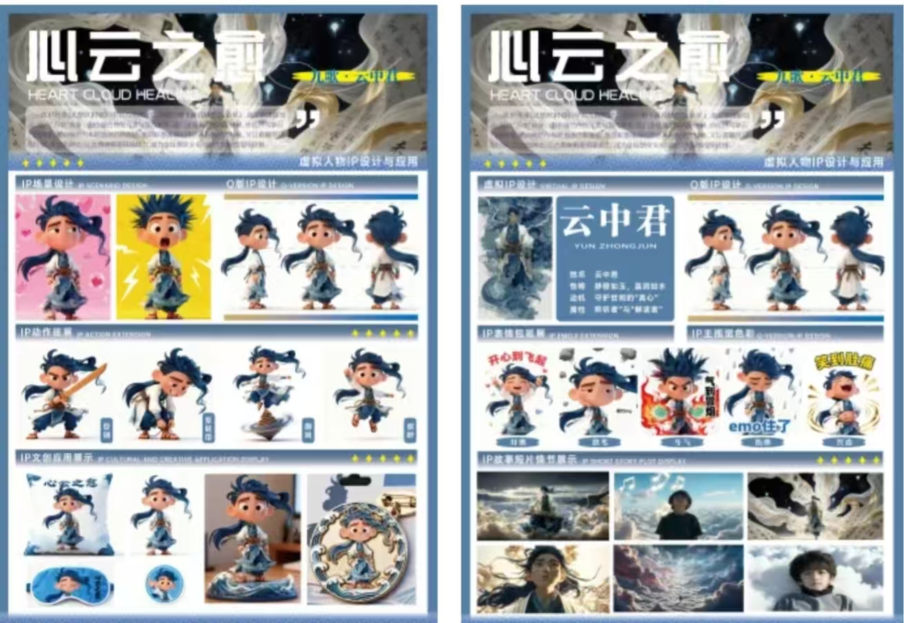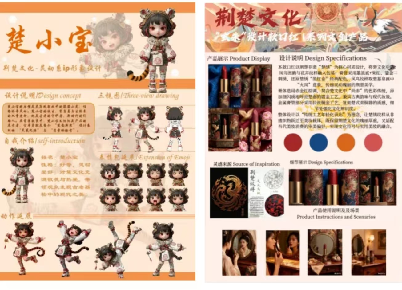 工坊学习后期学员围绕“生成式人工智能+荆楚文化”主题开展6小时极限文创主题项目孵化,产出了一批兼具技术内涵与文化特色的作品。学院以此次训练营为契机,夯实产教融合基础,未来将继续携手行业资源,推动 AIGC 与教育、文化、产业深度融合,培育复合型设计人才。