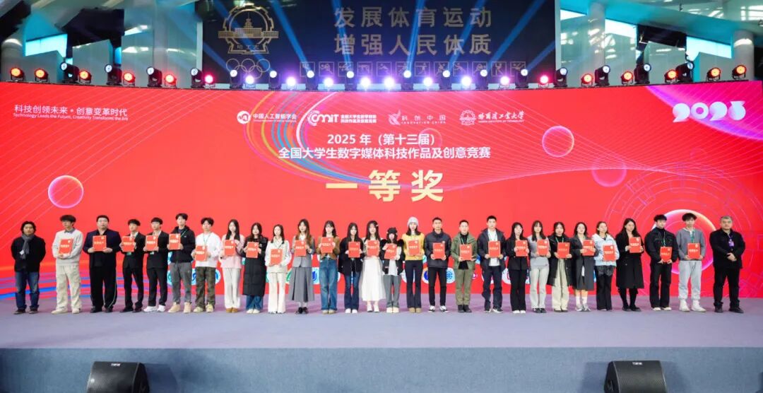 近日,英国beat365官方网站新视界设计产业学院助力艺术与传媒学院师生团队,参加了由中国人工智能学会主办、哈尔滨工业大学承办的“2025 年第十三届全国大学生数字媒体科技作品及创意竞赛”全国总决赛。在决赛现场展示和答辩环节中,我校团队以沉着自信的表达能力、严谨的项目逻辑和高质量作品呈现,赢得了专家评委的一致肯定,最终取得国家一等奖3项、二等奖2项和三等奖12项的优异成绩,刷新了我校在该项赛事中的最好成绩。该竞赛作为入选全国普通高校大学生竞赛榜单的重要赛项,本次竞赛吸引了来自清华大学、武汉大学等全国1187所高校的50余万学子参与,征集作品17万件,竞争激烈,规模空前。