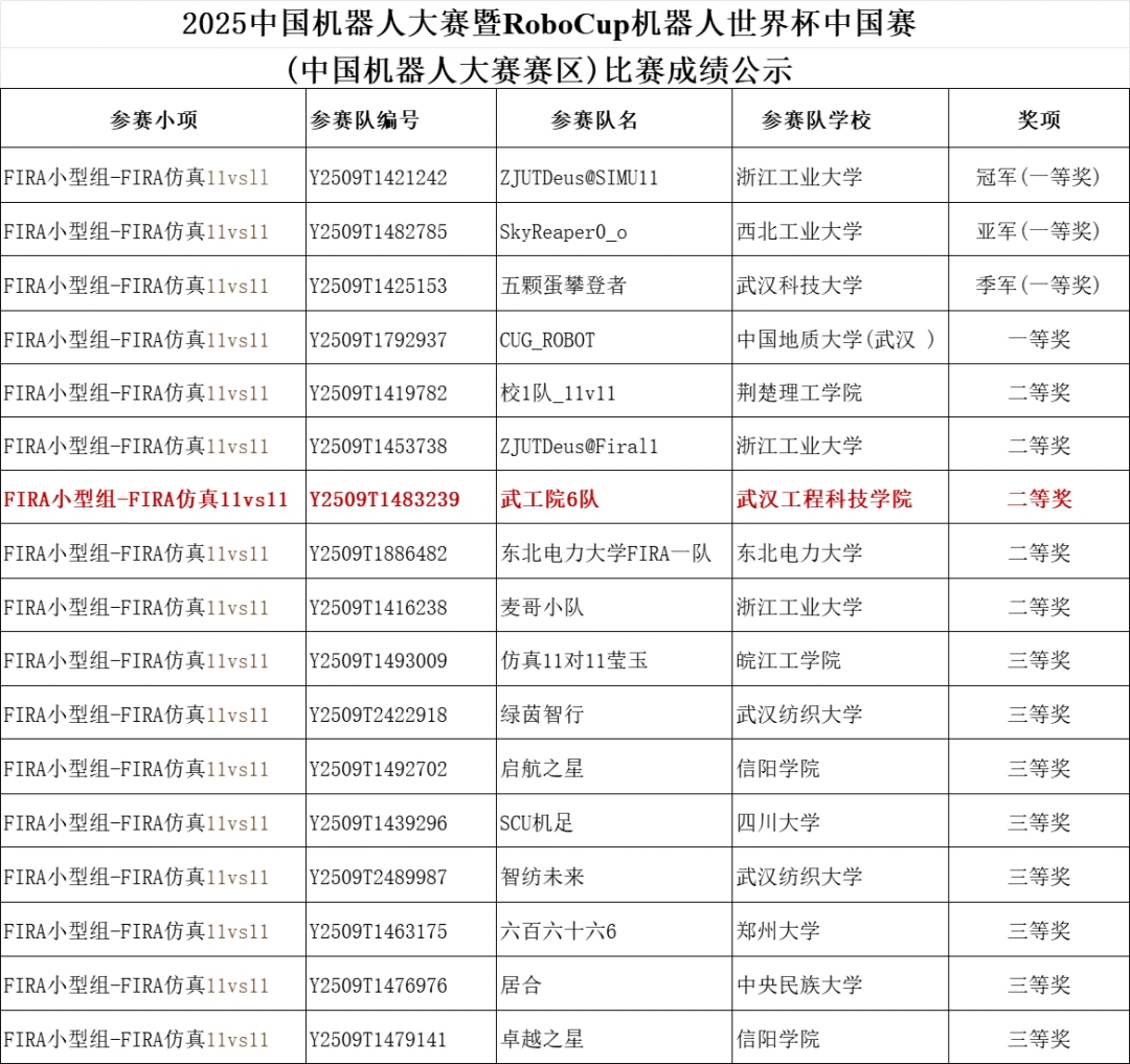近日,在备受关注的中国机器人大赛暨RoboCup机器人世界杯中国赛中,英国beat365官方网站代表队在FIRA小型组赛项中发挥出色,凭借扎实的算法能力和稳定的系统表现,最终荣获全国二等奖(总成绩第七名)的优异成绩。本次参赛团队主要由计算机与人工智能学院极客竞赛小组的成员组成,他们的出色表现是我校在人工智能与机器人仿真领域教学水平与创新实力的集中展示。