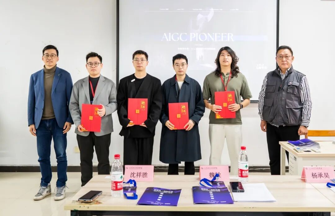 艺术与传媒学院副院长魏敏为暗壳AI联合创始人杨承昊、矩阵纵横研发负责人谢登程、荣誉讲师黄中健,助教老师黄政民4位专家颁发企业导师聘书,正式聘请他们为学院产业导师,未来将持续参与课程建设与人才培养。随后,学院教师代表为全体参训学生颁发结课证书,表彰他们在工作坊中的积极投入与优异成果。
