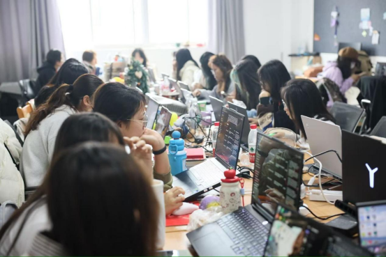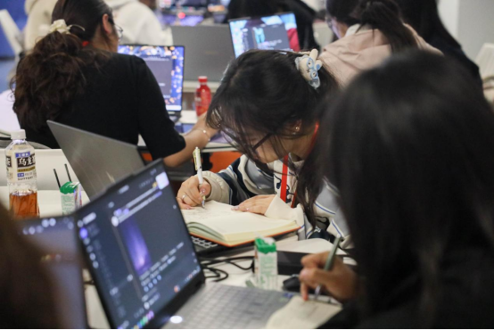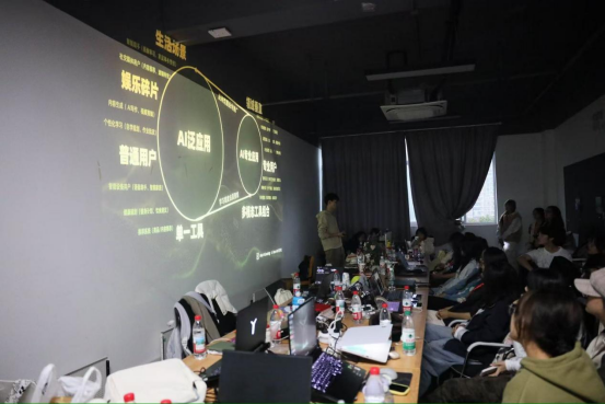 开营仪式后,师生教学。第一天系统化讲解与案例拆解,帮助学生快速掌握AIGC工具的核心功能与创意表达技巧。大部分学员来自于大一新生,一开始对于操作还不熟练,在导师们的耐心指引、相互帮助下迅速进入状态,短时间内就初见成效。