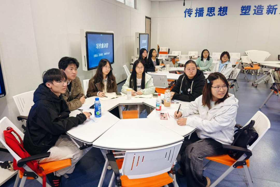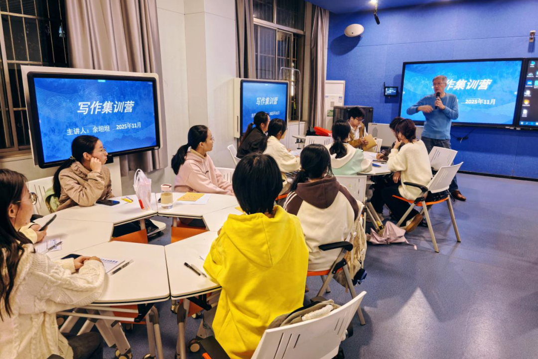 集训授课过程中,余坦坦老师结合近三届楚才杯大学组真题与获奖案例,深入解析命题规律与写作技巧,并结合人工智能广泛应用的现状,对文学创作进行了深入交流和探讨。采用“一对一指导+现场创作点评+分组讨论交流”的多样化模式,围绕“如何结合专业特色创作”等问题深入探讨,让学生在思维碰撞中深化理解、提升能力。
