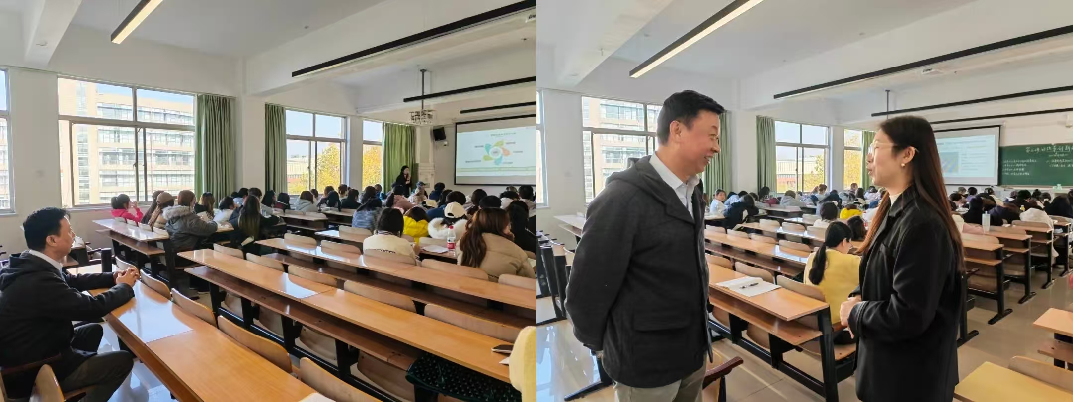 活动第一环节为专家现场听课评课。杨晓慧教授在教1-404教室听取了我校马克思主义学院关仟副教授主讲的“思想道德与法治”课。关老师围绕课程重点,结合案例教学与学生互动,课堂氛围活跃,教学效果显著。听课结束后,杨晓慧教授与授课教师进行了深入交流,结合课程内容、教学方法与育人实效进行针对性指导,既肯定课程教学中的亮点特色,也指出可优化提升之处,为一线思政课教学精准赋能。