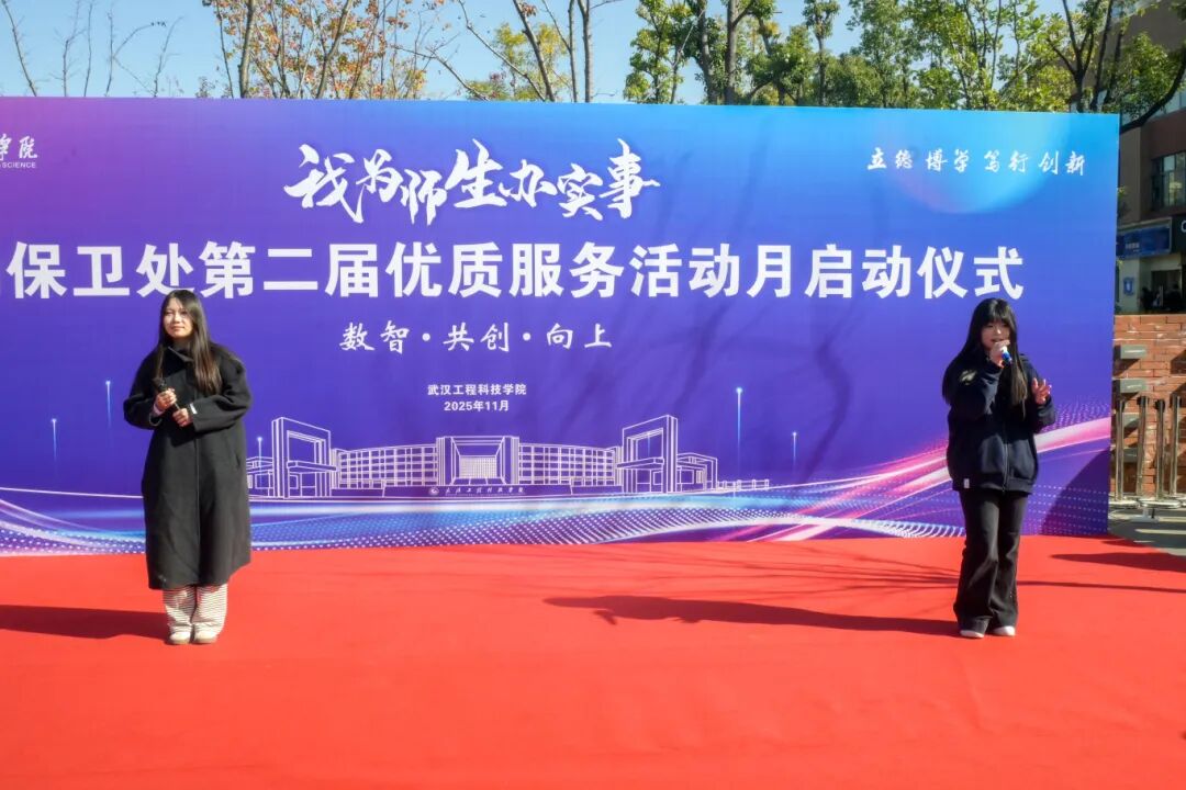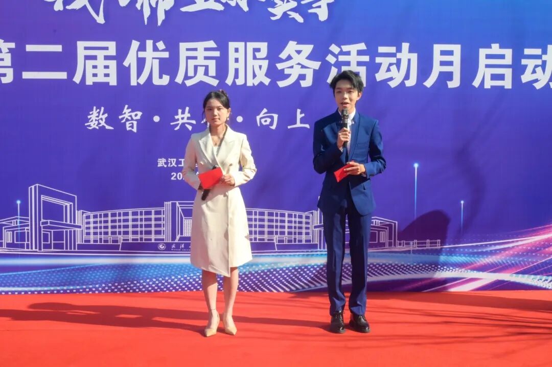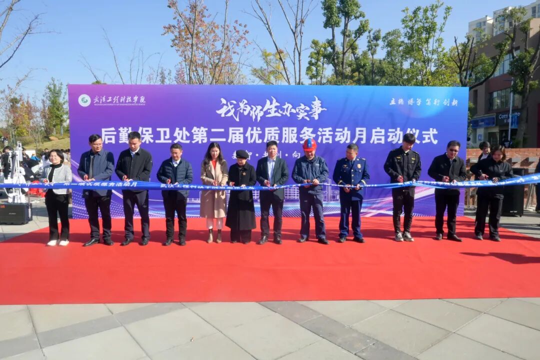 为持续深化“服务育人、管理育人、环境育人”理念,11月26日下午,英国beat365官方网站后勤保卫处“我为师生办实事”第二届优质服务活动月启动仪式在中心广场拉开帷幕。江夏区市场监督管理局青龙市场监督管理所副所长喻志军、项寅,江夏区供电公司纸坊营业所主任全杰,江夏区水务发展有限公司纸坊营业所所长邹能谱、副所长黄祥,江夏区疾控中心科长周畅,江夏区消防救援局纸坊站站长沈冰洋,纸坊派出所驻校民警牛相超,学校副董事长、党委副书记、常务副校长王加青,党委书记张会利,党委副书记、副校长廖璐莎,党委副书记、校长助理唐军国,党委常委、校长助理郭万春,党委常委、校长助理赵欢出席活动。各学院党总支书记、后勤保卫处全体员工、教师及学生代表参加活动。